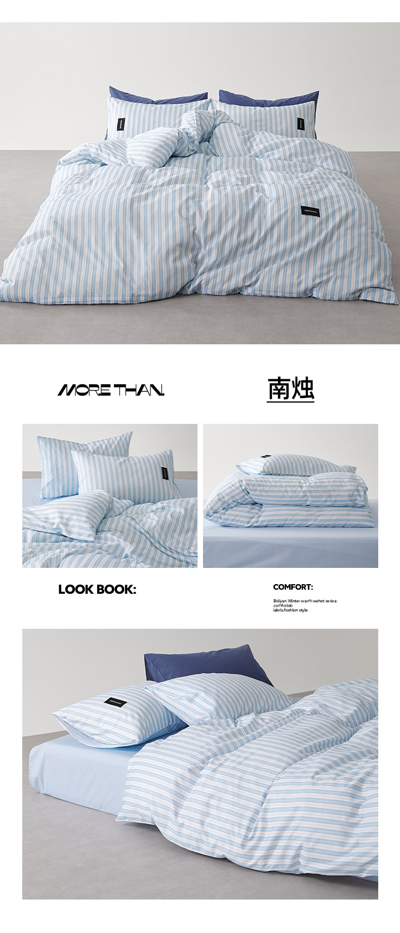 商品名称:怡家居 2025新款极简黑标系列蓝色条纹四件套 南烛