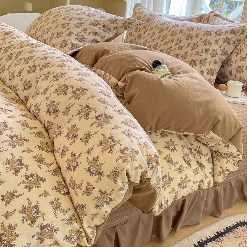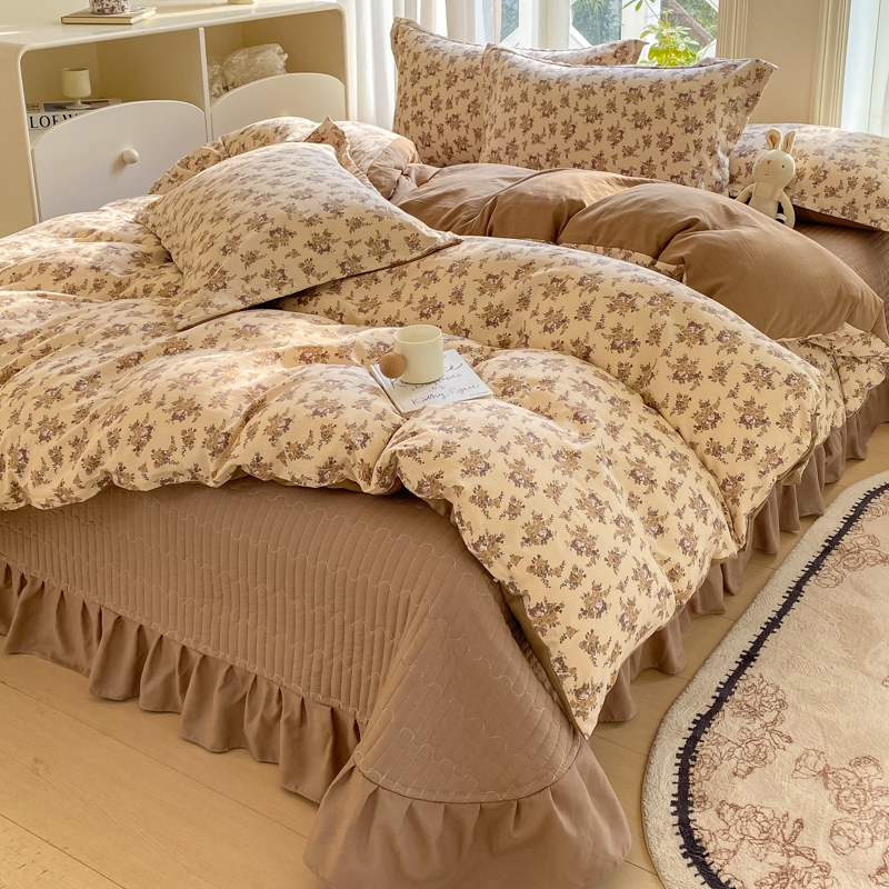 尚美 2025新款小碎花针织棉床盖四件套 复古情