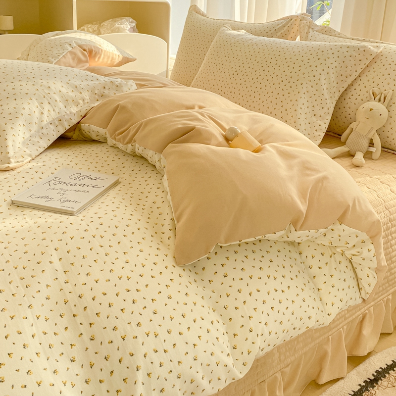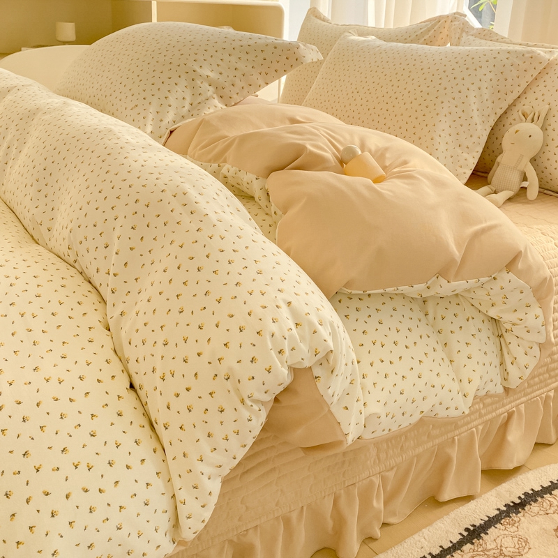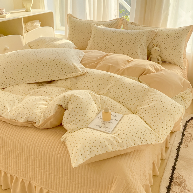 商品名称:尚美 2025新款小碎花针织棉床盖四件套 金色年华