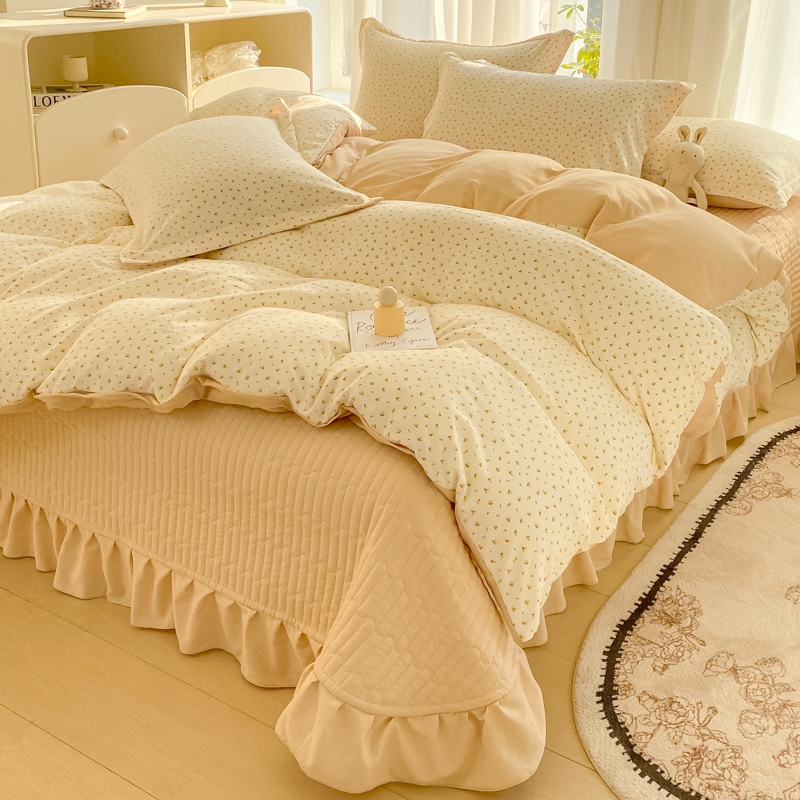尚美 2025新款小碎花针织棉床盖四件套 金色年华