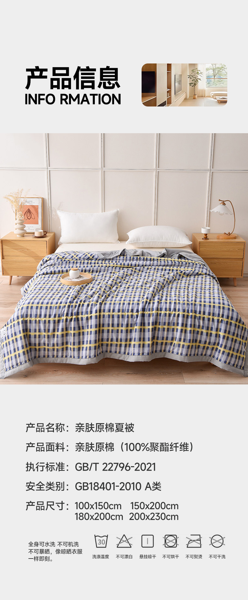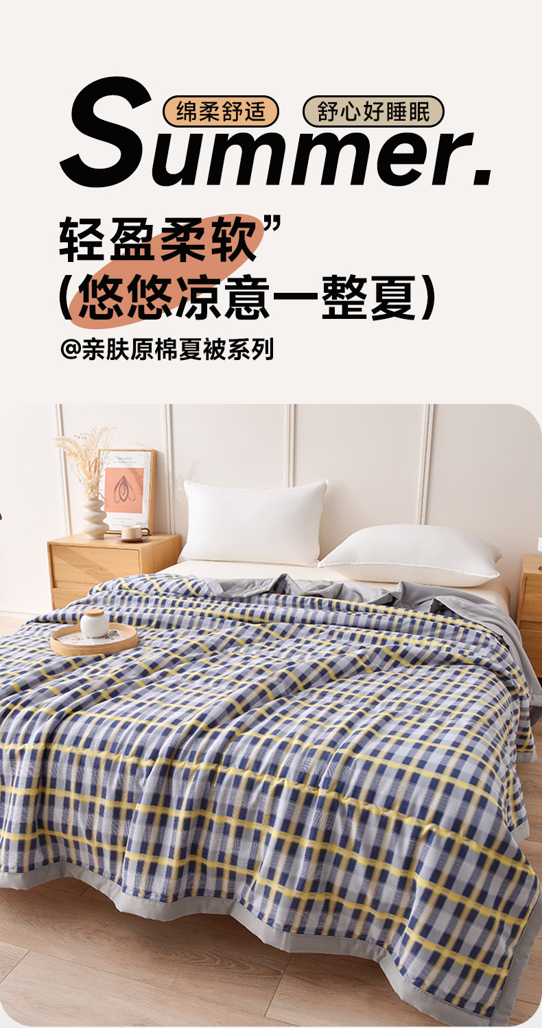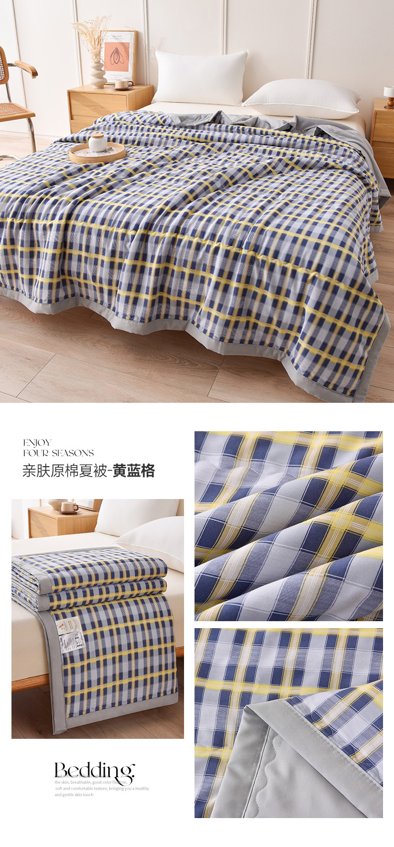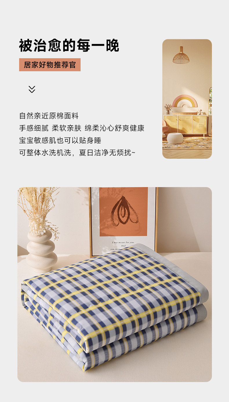 商品名称:艾兜坊 2025新款亲肤原棉夏被 3黄蓝格
