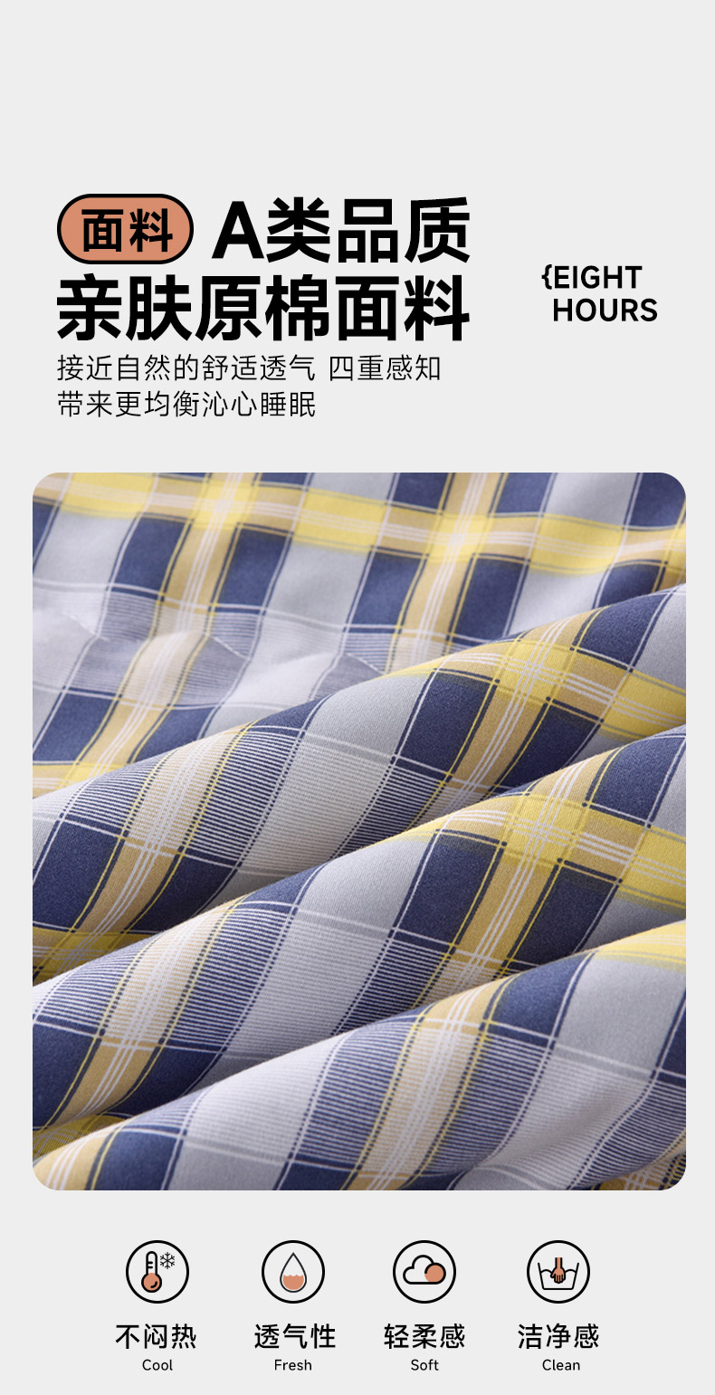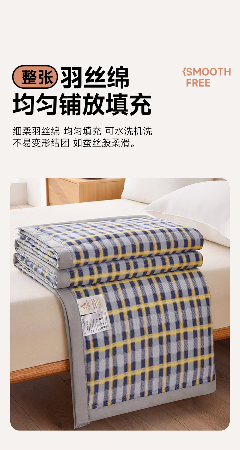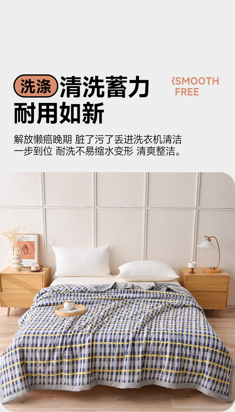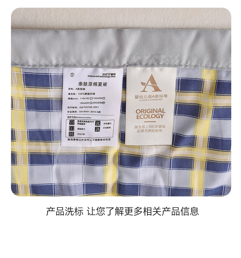 商品名称:艾兜坊 2025新款亲肤原棉夏被 3黄蓝格