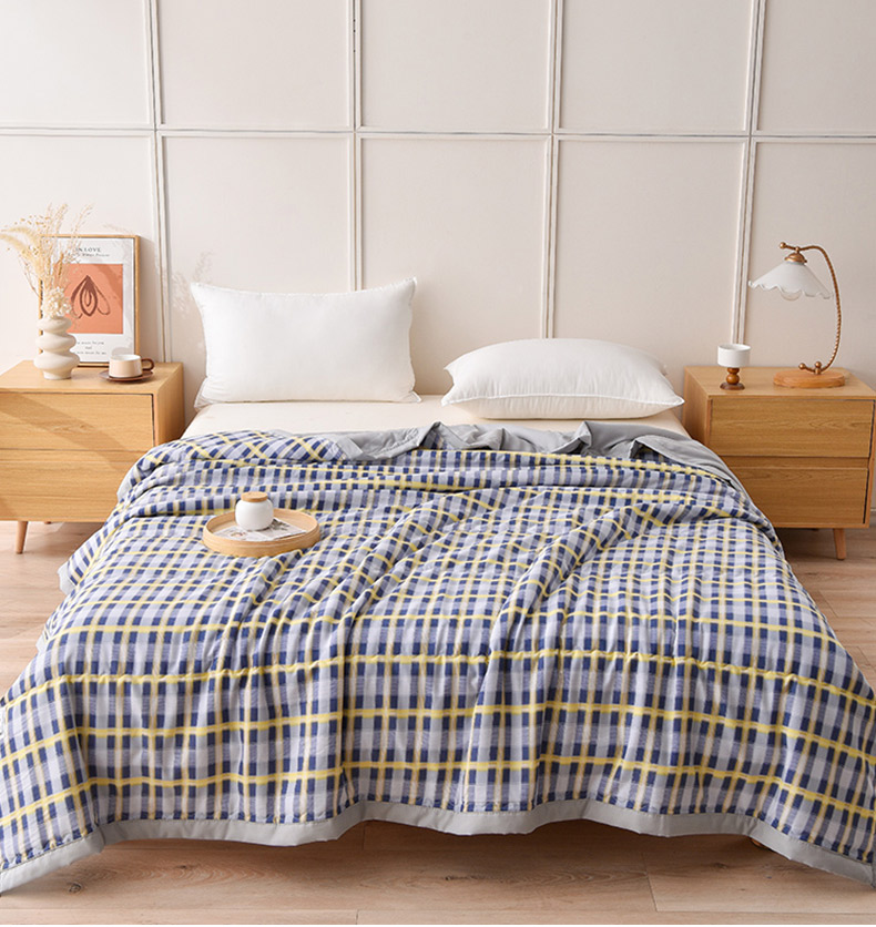 艾兜坊 2025新款亲肤原棉夏被 3黄蓝格