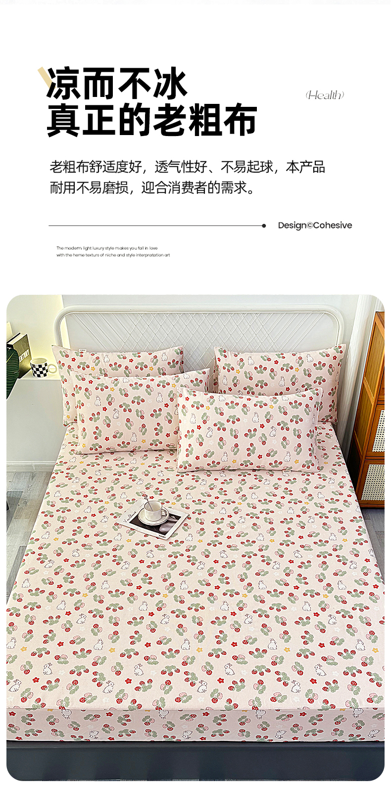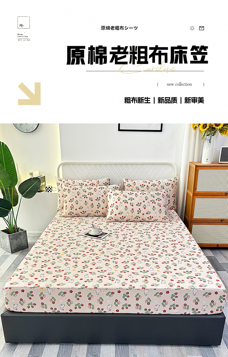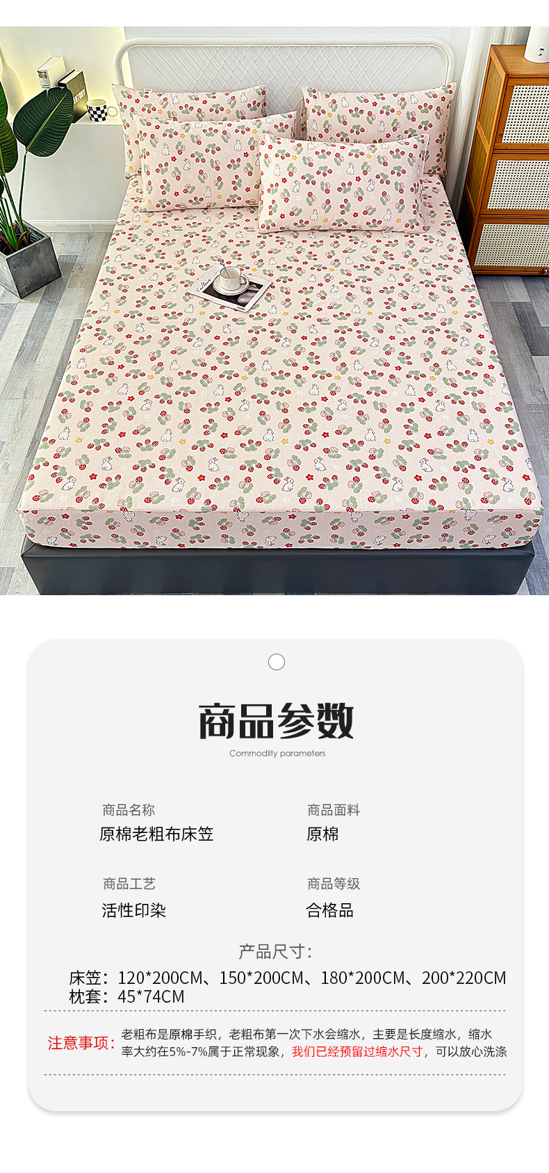 • 91家纺网 家纺一手货源 找家纺 伊而梦蚊帐 2025新款原棉老粗布床笠 草莓兔