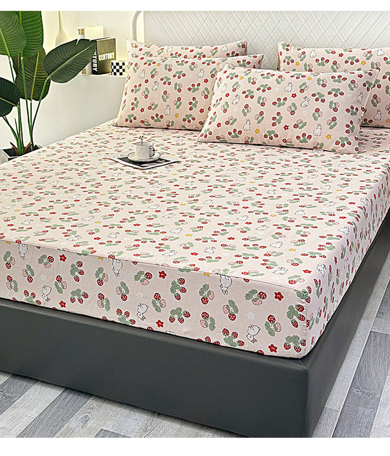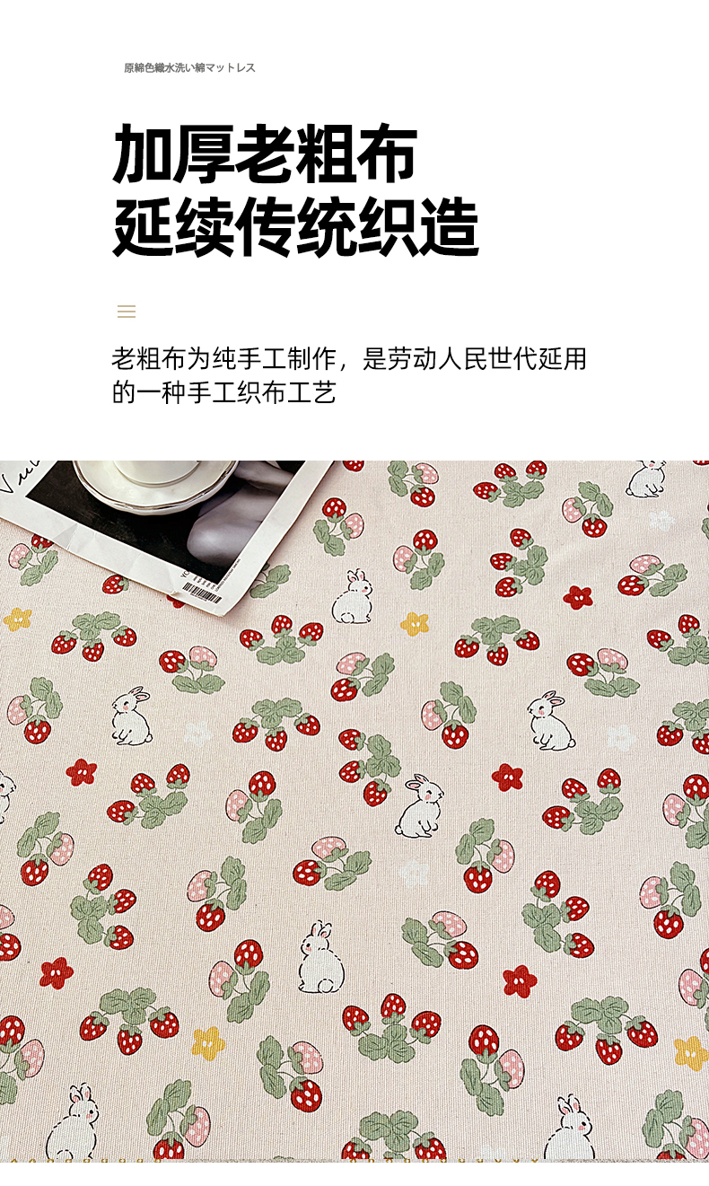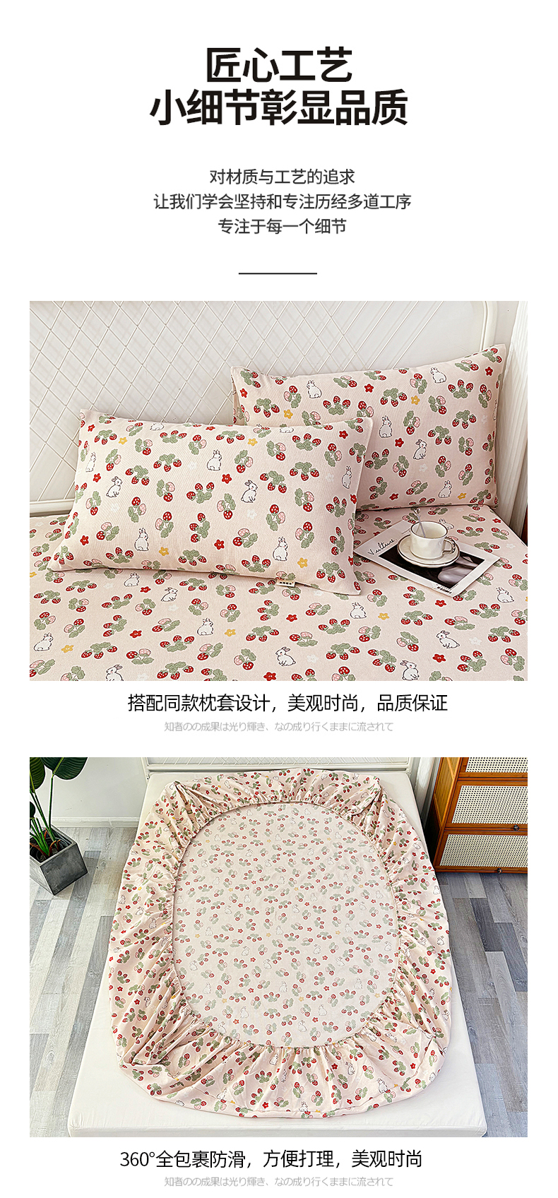• 91家纺网 家纺一手货源 找家纺 伊而梦蚊帐 2025新款原棉老粗布床笠 草莓兔