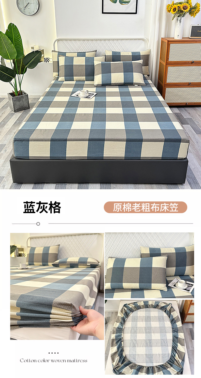 • 91家纺网 家纺一手货源 找家纺 伊而梦蚊帐 2025新款原棉老粗布床笠 蓝灰格