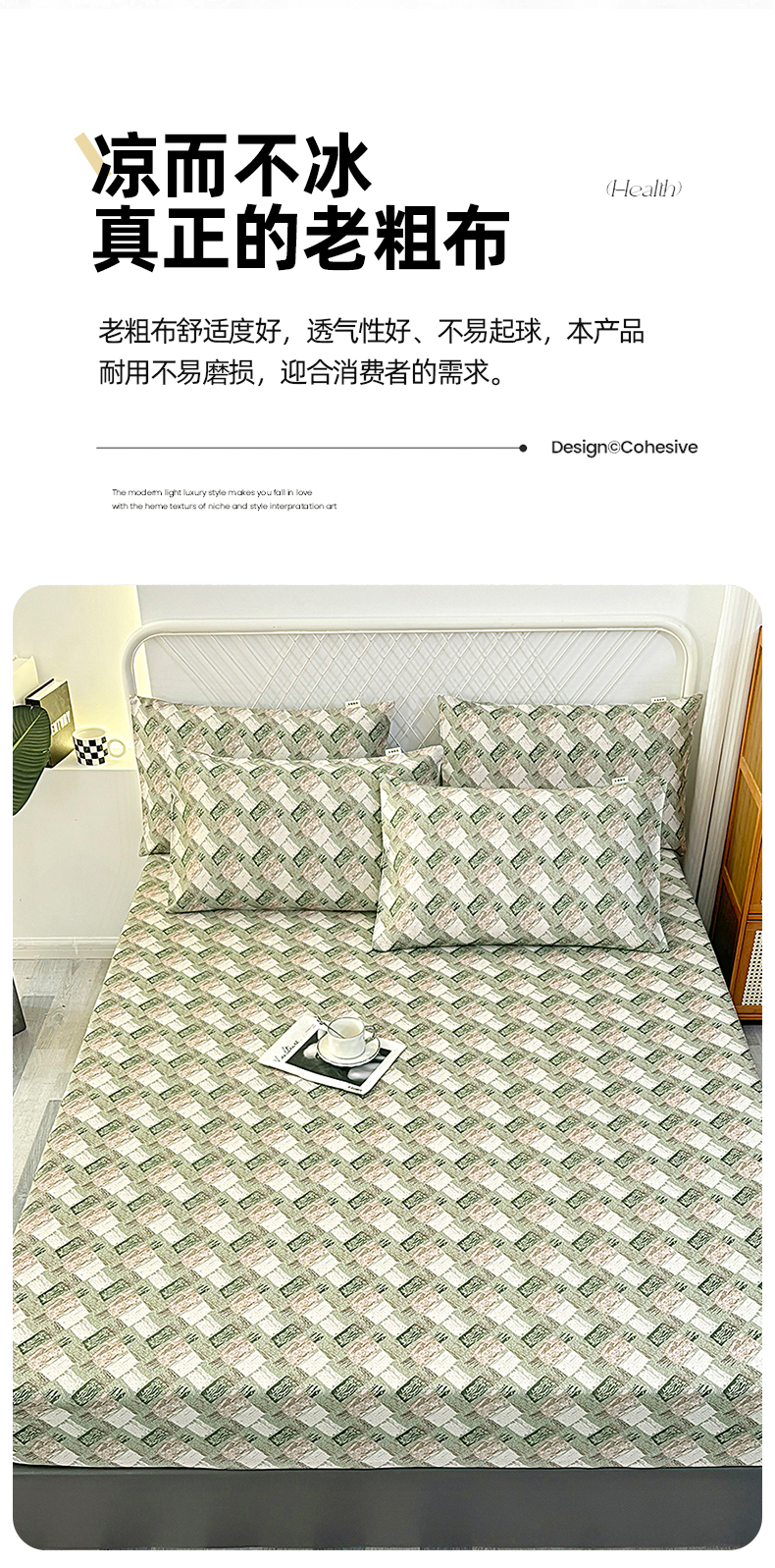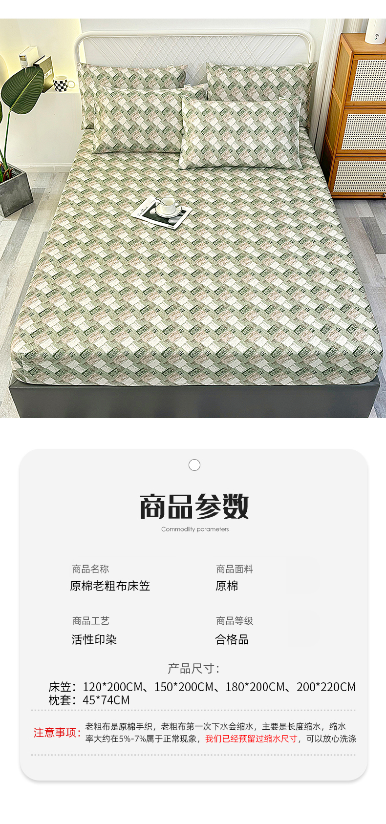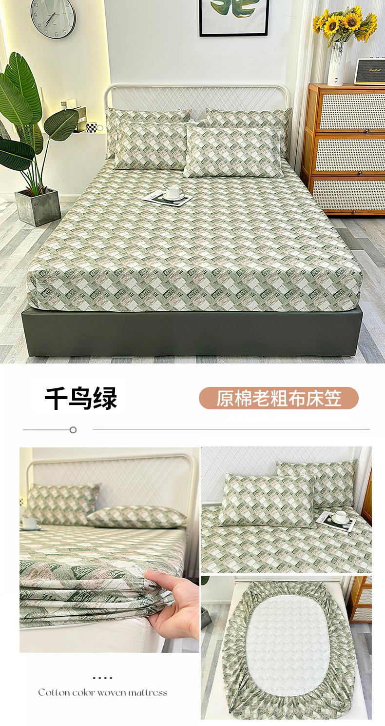 • 91家纺网 家纺一手货源 找家纺 伊而梦蚊帐 2025新款原棉老粗布床笠 千鸟绿