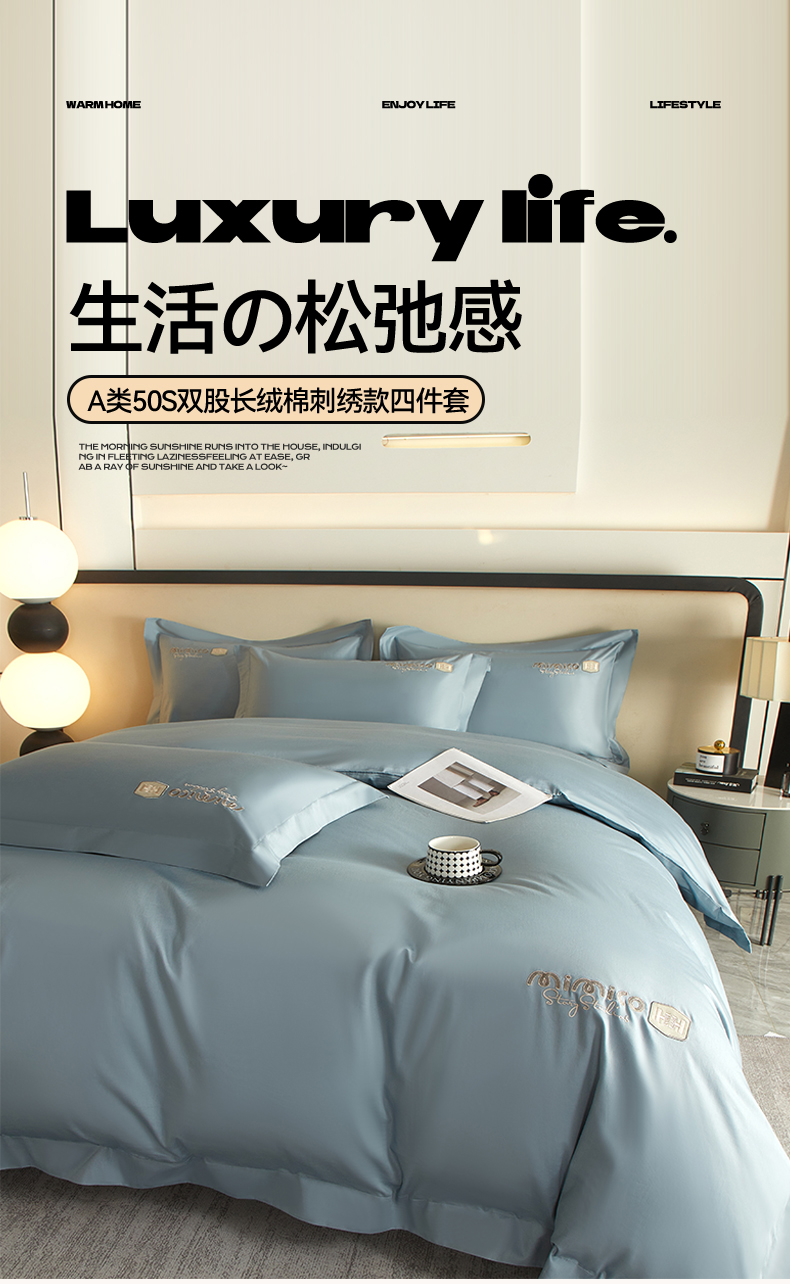 (总)曼秀琳家纺 2025新款50s双股长绒棉刺绣款四件套(静雅系列),静雅-海岸绿,静雅-岚紫,静雅-舒芙蕾,静雅-松柏绿,静雅-星空蓝,静雅-英伦灰