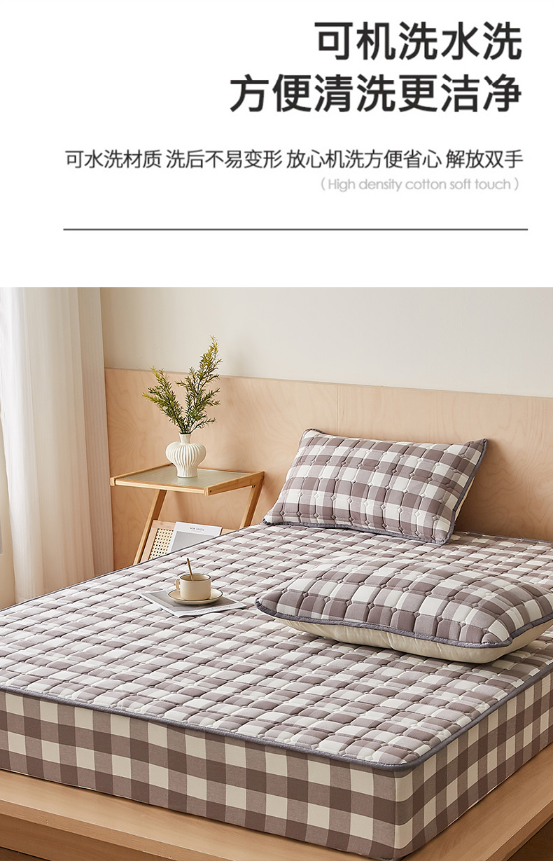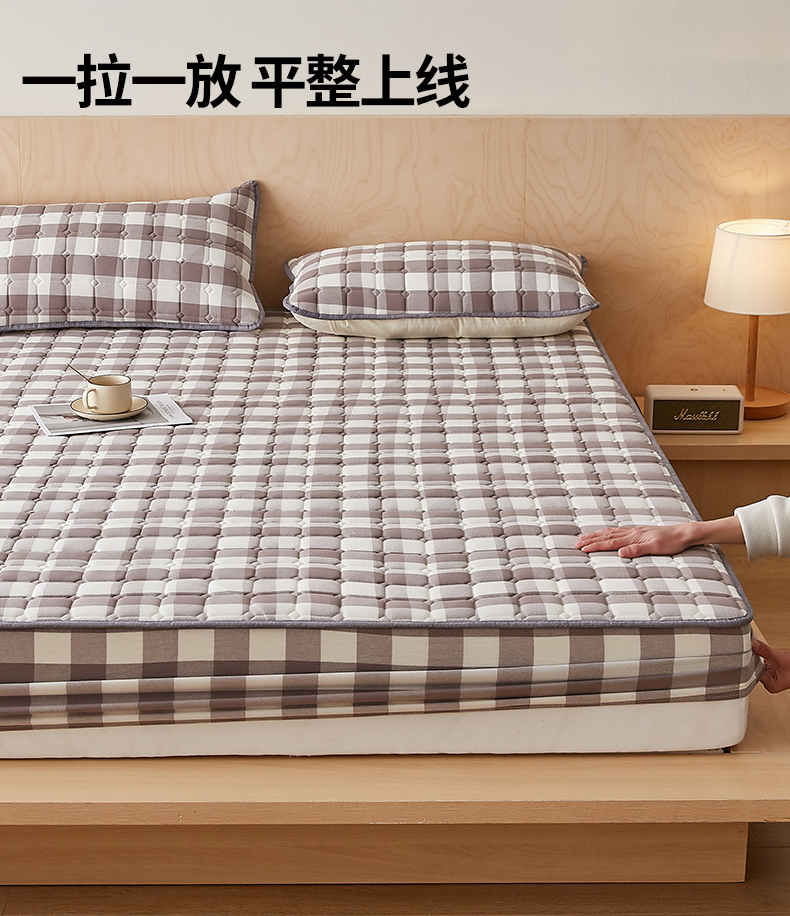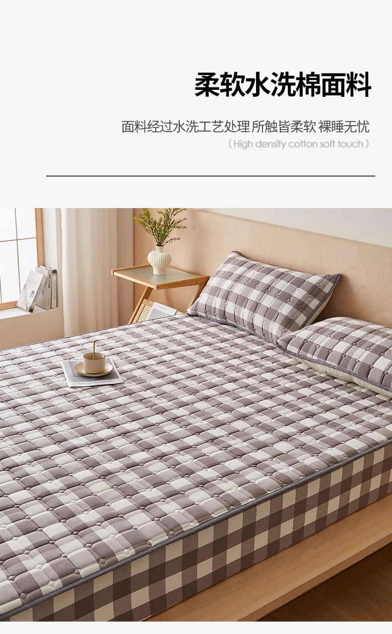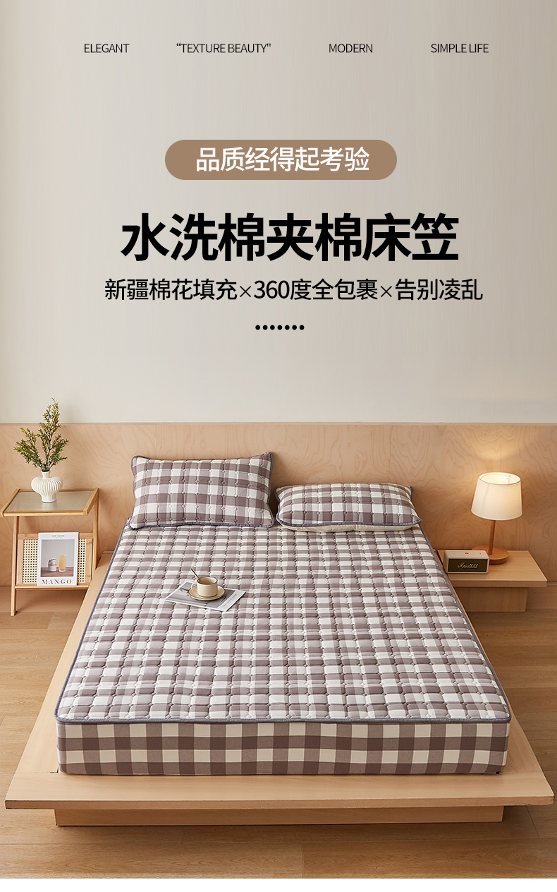 • 91家纺网 家纺一手货源 找家纺 暖季家纺 2025新款水洗棉夹棉床笠无印风棉花款 棉花床笠灰中格