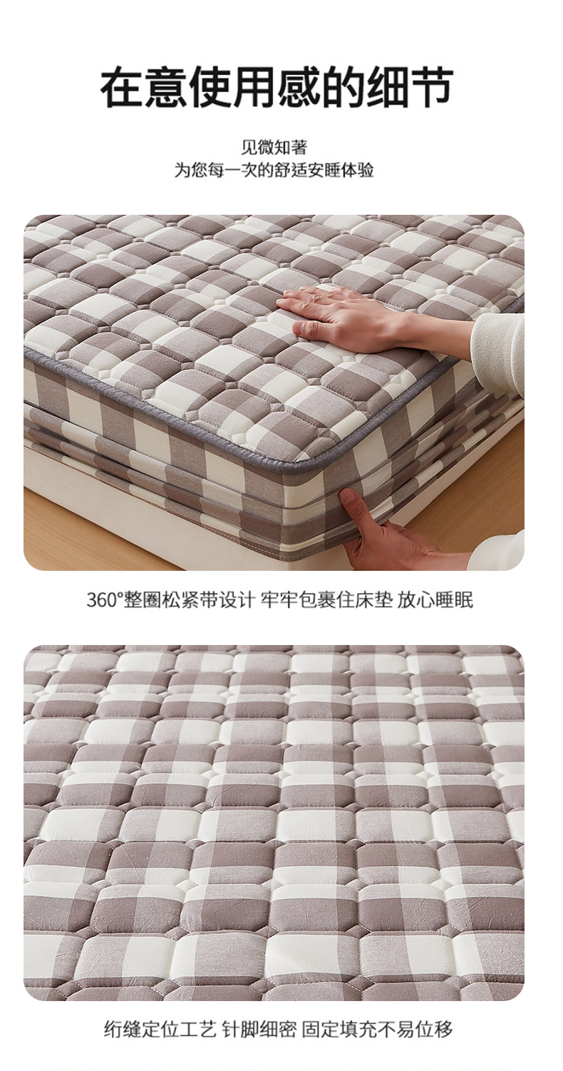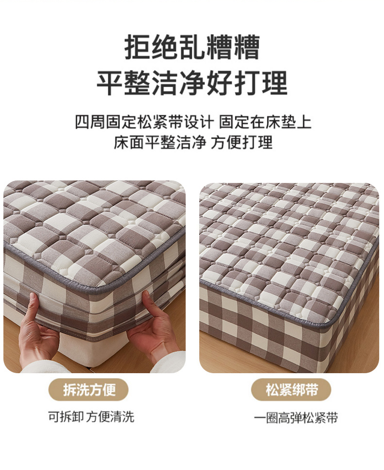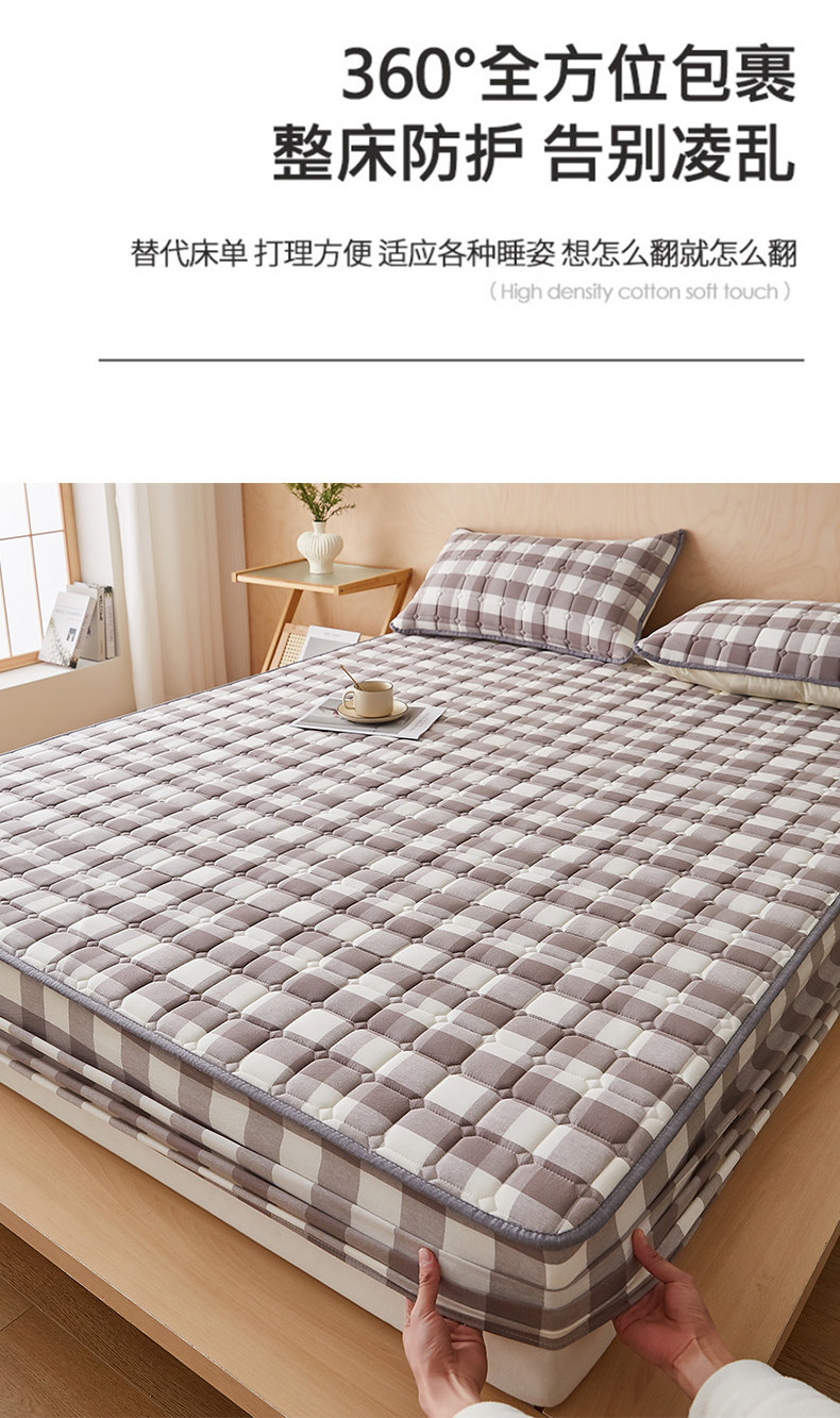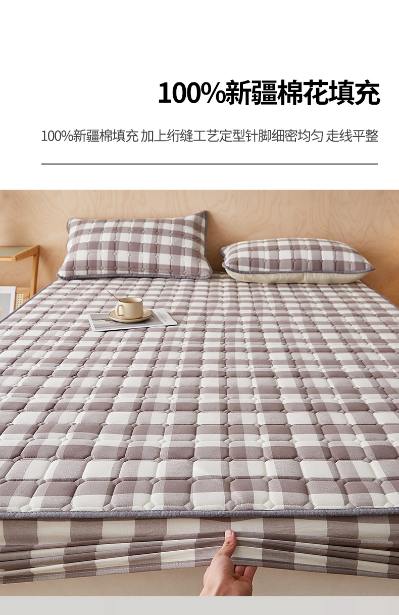 • 91家纺网 家纺一手货源 找家纺 暖季家纺 2025新款水洗棉夹棉床笠无印风棉花款 棉花床笠灰中格
