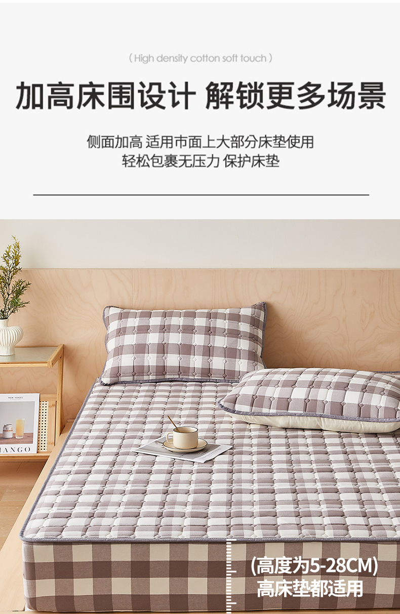 暖季家纺 2025新款水洗棉夹棉床笠无印风棉花款 棉花床笠灰中格