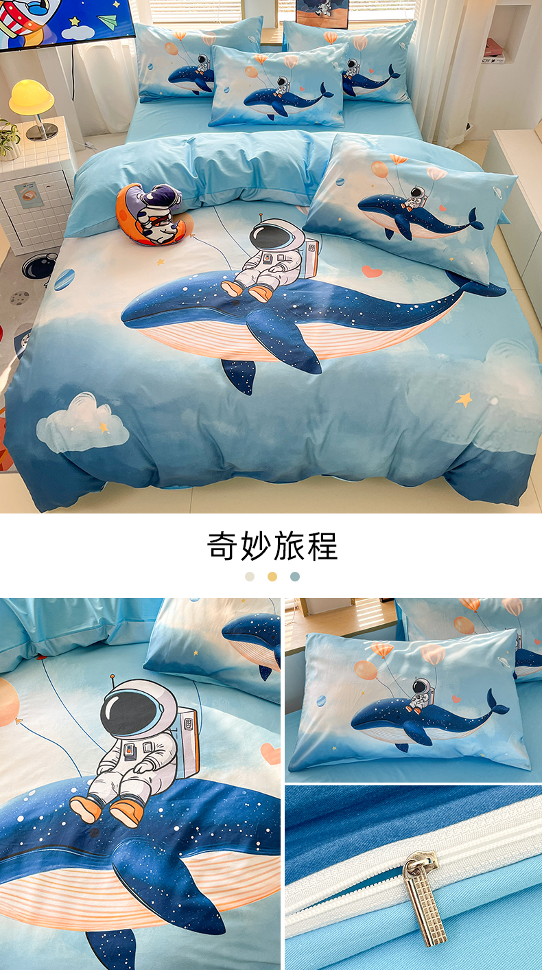 当前位置: 91家纺网 > 商品网购 > 床品套件 > 四件套 > 全棉普通四件套 > 孩子王 2025新款亲肤活性大版纯棉专版太空人卡通学生儿童宿舍四件套系列 奇妙旅程