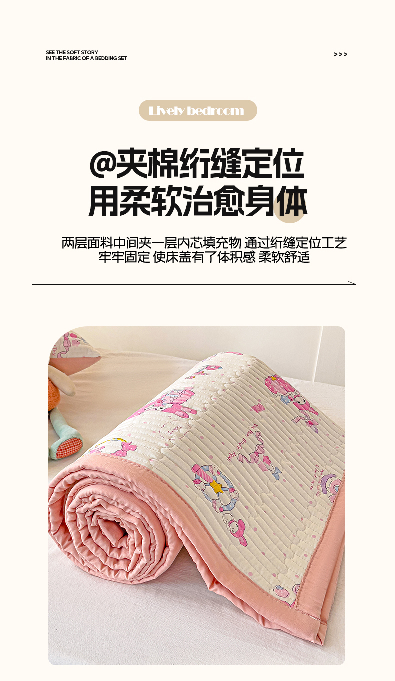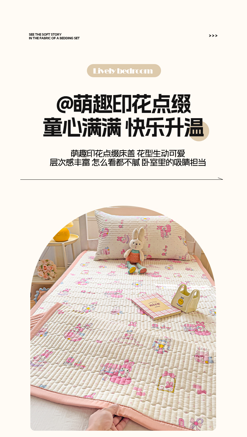 罗亿家纺 2025新款宿舍款-水洗棉夹棉床盖 小美摩天轮