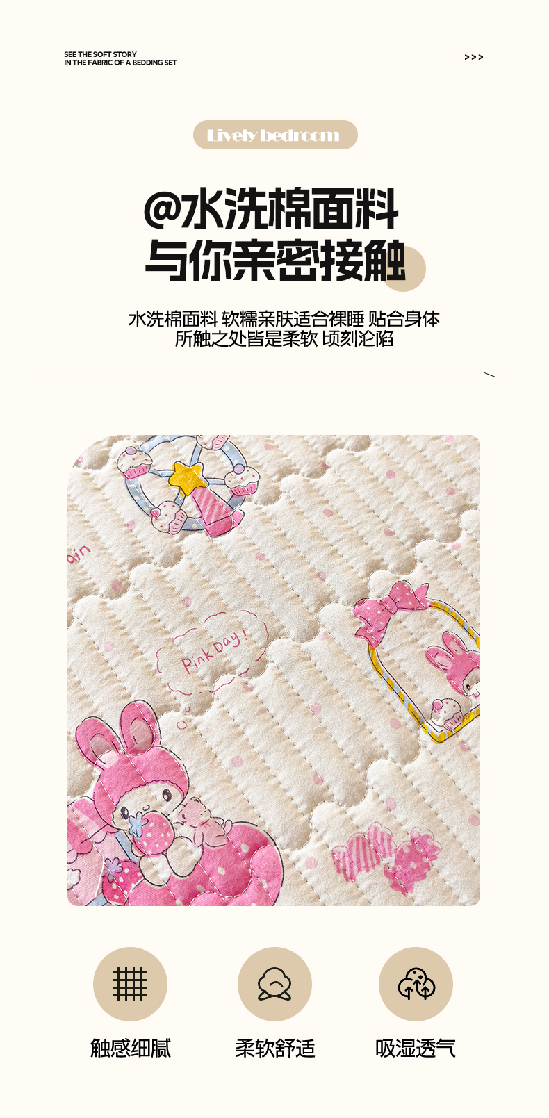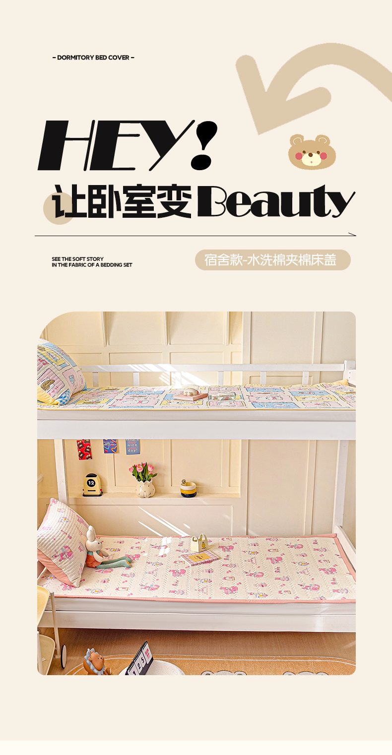 商品名称:罗亿家纺 2025新款宿舍款-水洗棉夹棉床盖 小美摩天轮