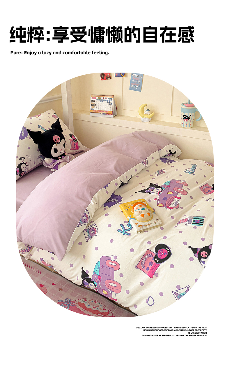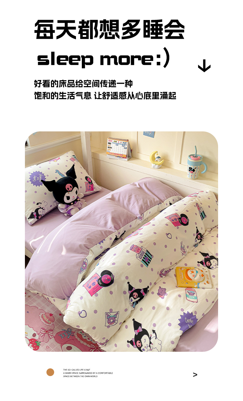 当前位置: 91家纺网 > 商品网购 > 床品套件 > 四件套 > 水洗棉四件套 > 贝扬思家纺 2025新款水洗棉三丽鸥简约系列四件套-宿舍床 开跑车库洛