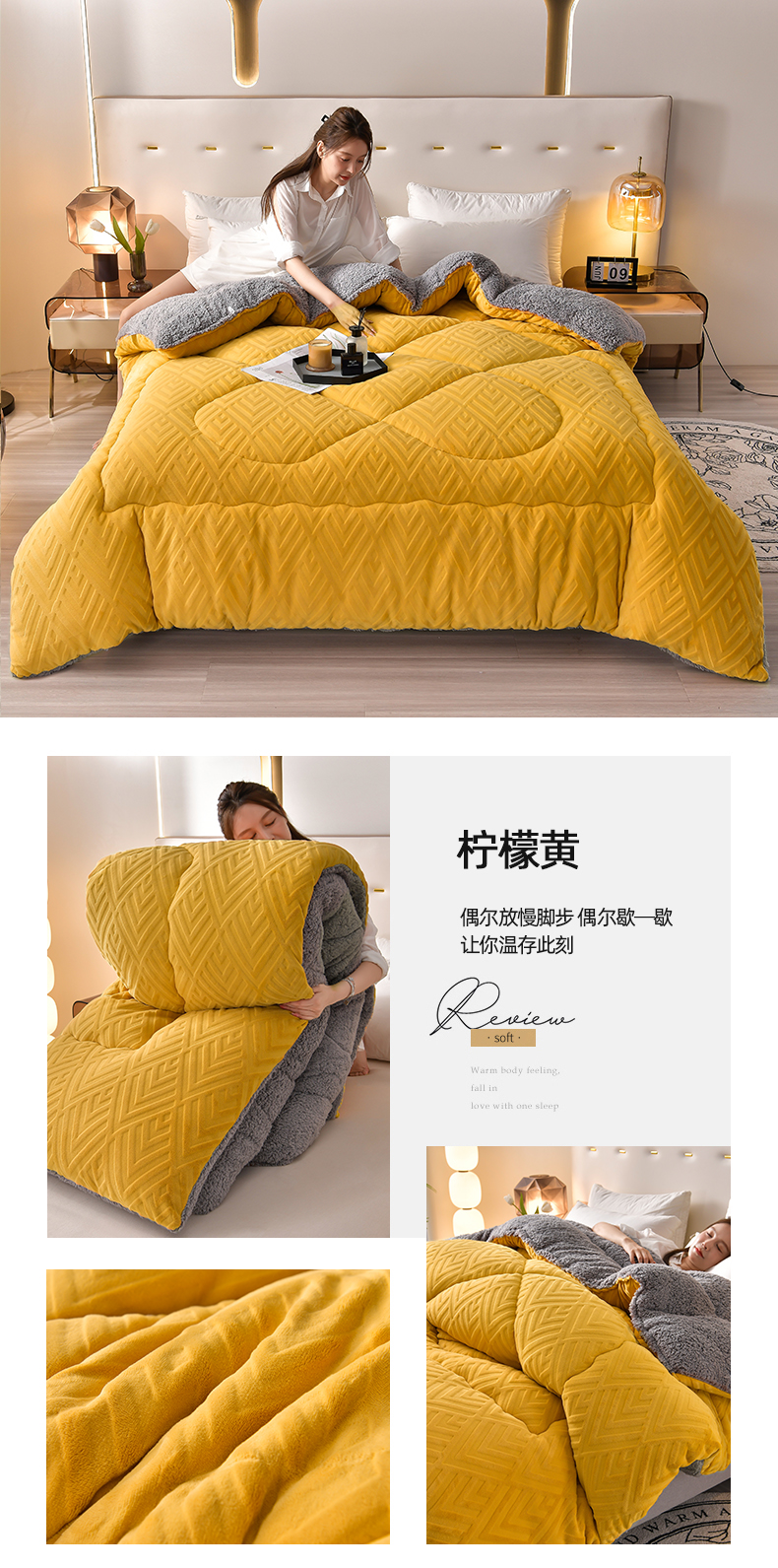 • 91家纺网 家纺一手货源 找家纺 (买家秀 爆款不断货)A类母婴级羊羔绒被子被芯牛奶绒被子被芯春秋被秋冬被羊羔绒冬被被芯纯色牛奶绒冬被 条纹-柠檬黄