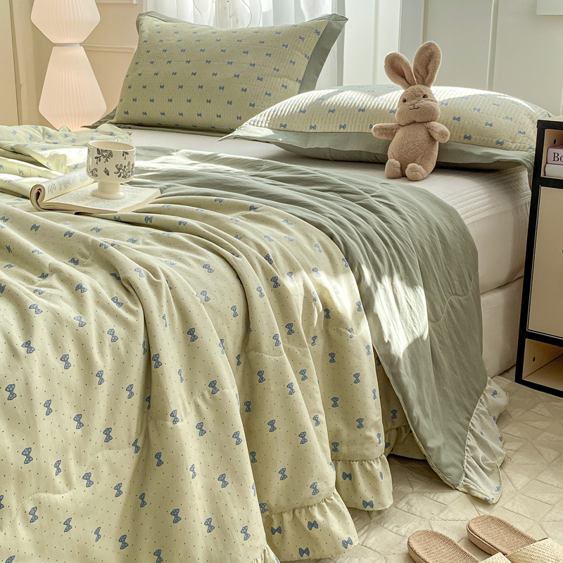 • 91家纺网 家纺一手货源 找家纺 尊妙被业 2025新款针织棉花边夏被春秋被 搁浅