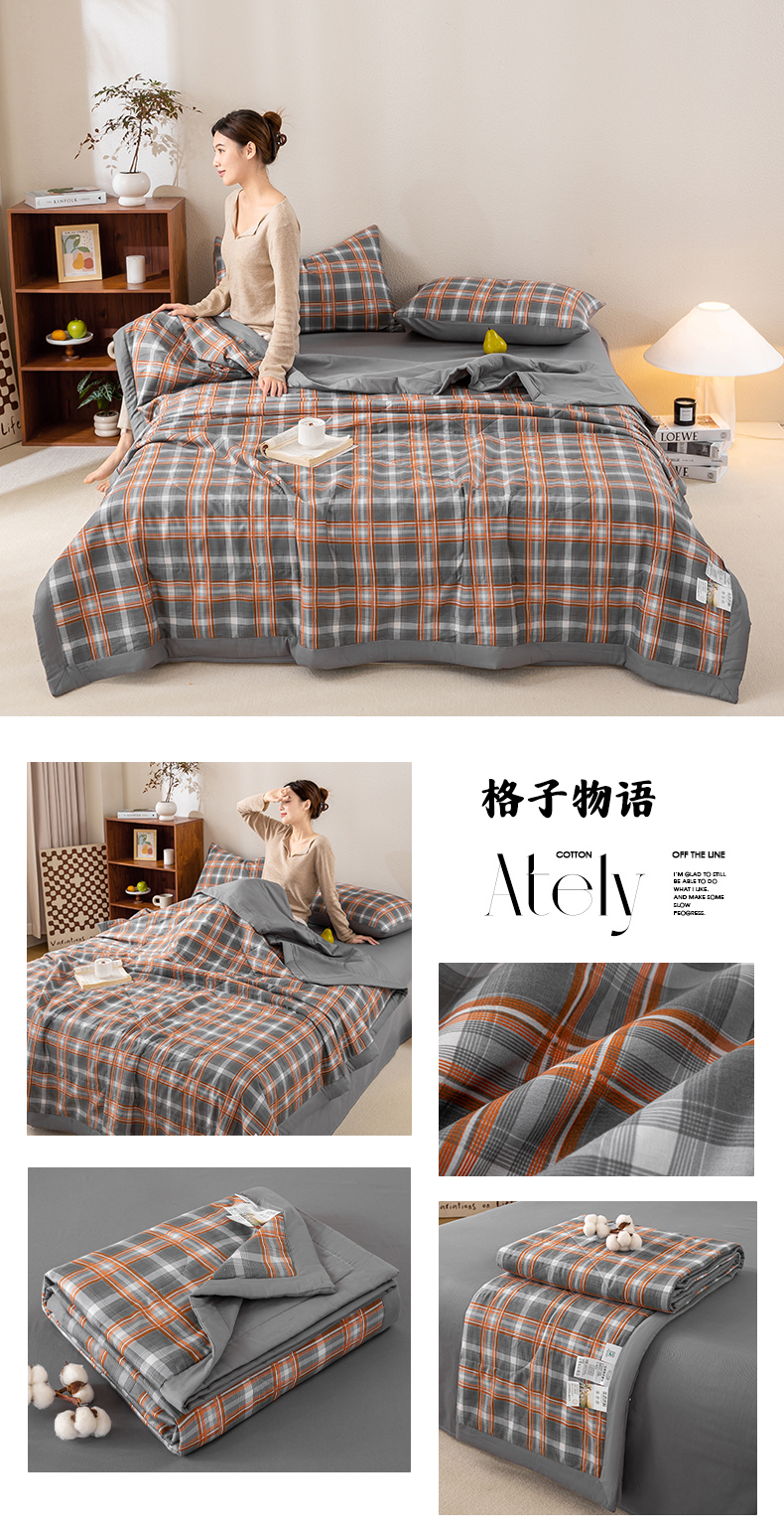 • 91家纺网 家纺一手货源 找家纺 憨豆家纺 2025新款里外全棉100%棉花夏被无印风格纯棉夏凉被纯色双拼空调被直播被子(包检测) 格子物语