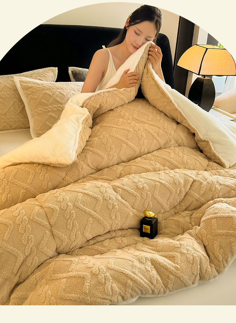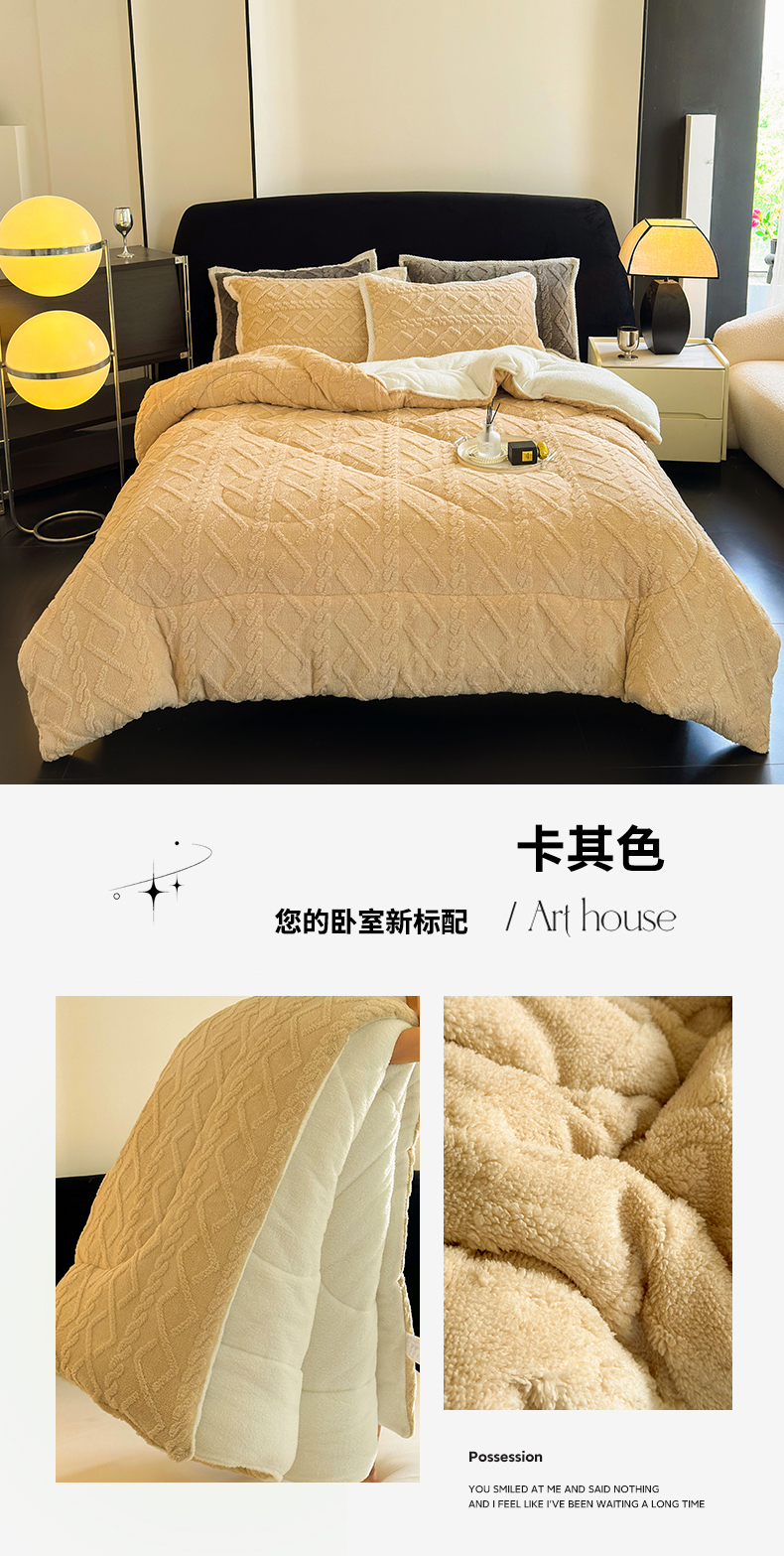 买家秀 爆款不断货A类羊羔绒被子被芯牛奶绒被子被芯春秋被秋冬被塔芙绒被子被芯雪花绒被子北极绒冬被 AB版-卡其色