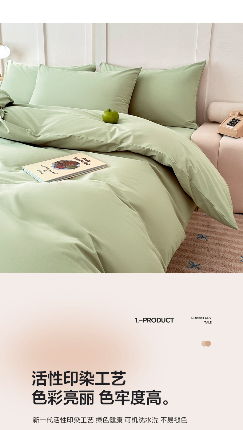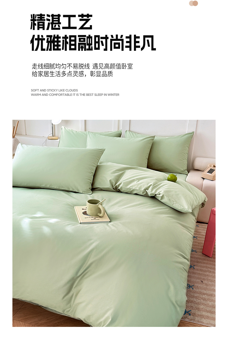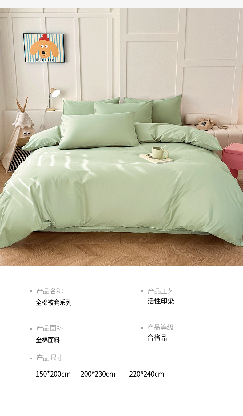 商品名称:佰亿莱 2025新款简约舒适全棉单品系列单被套 豆绿色