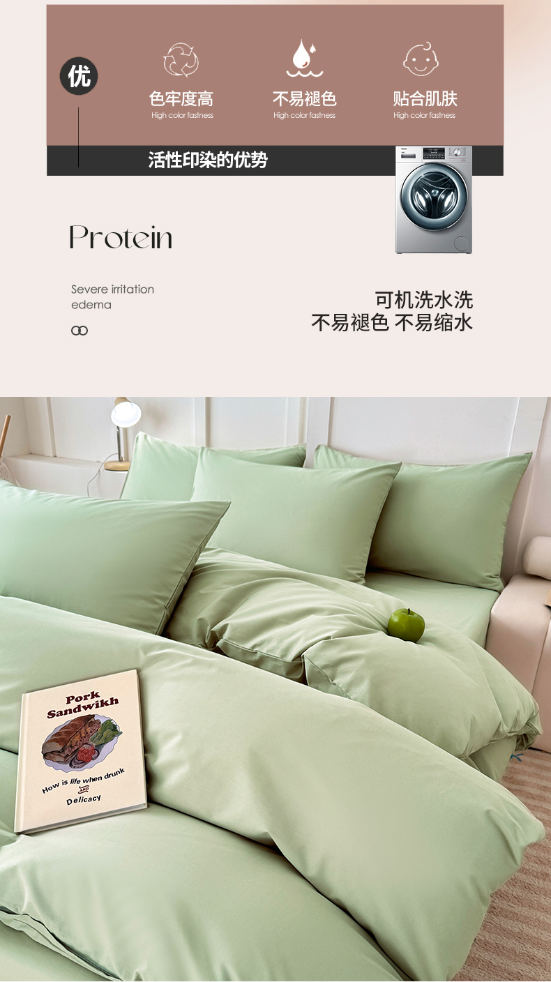 (总)佰亿莱 2024新款全棉无印风水洗棉学生宿舍三件套四件套 图片二,豆粉+仙女粉,格调蓝+摩卡灰,格调紫+仙女粉,卡其+咖啡,摩卡灰,摩卡灰+卡其,摩卡灰+奶咖,奶白+卡其,青草绿+奶黄,天空蓝+卡其,香草绿+格调紫,芝士蓝+奶黄