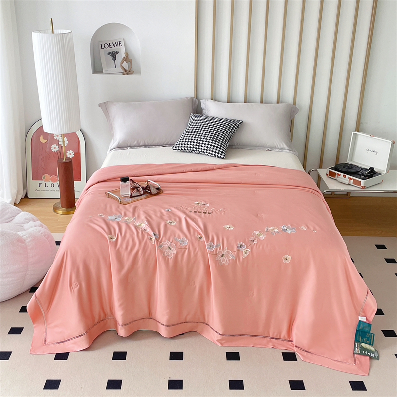 (总)优姿家纺 2025新款60S天丝绣花镂空夏被1,粉色,灰色,蓝色,橘色,黄色,浅绿色,肉粉色