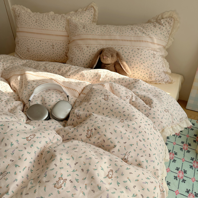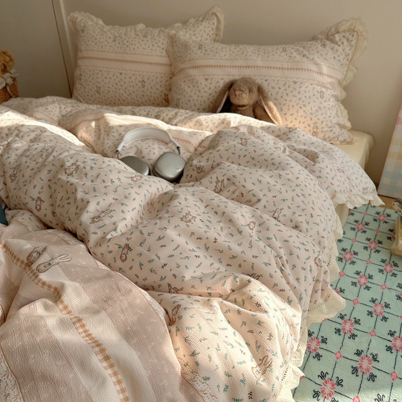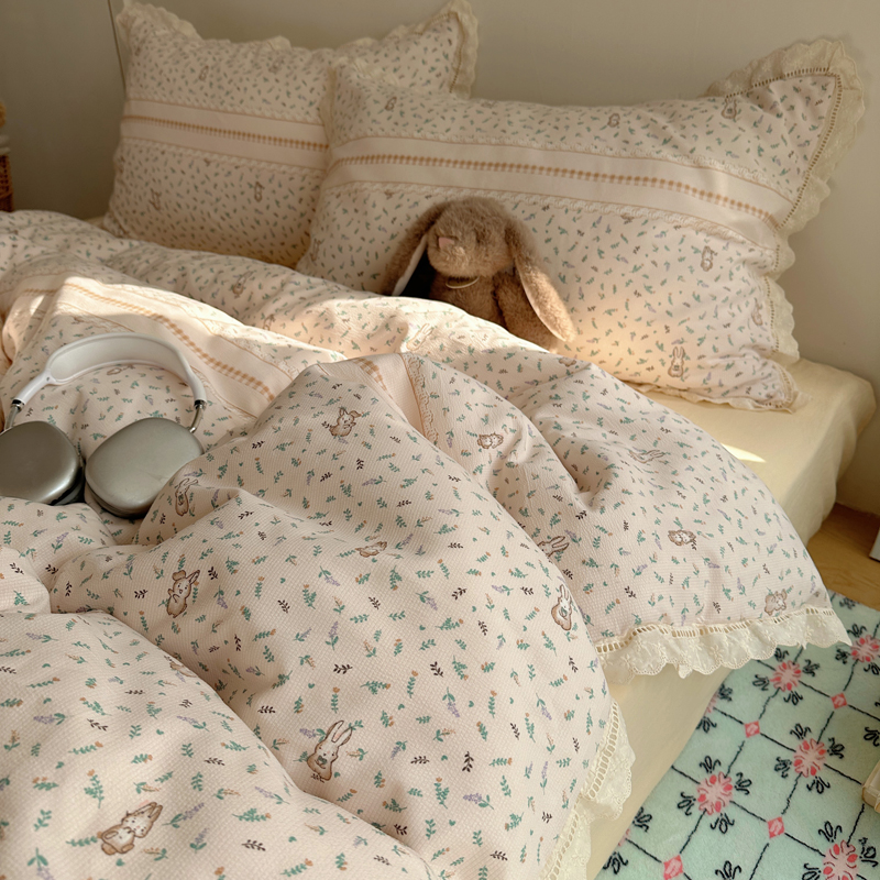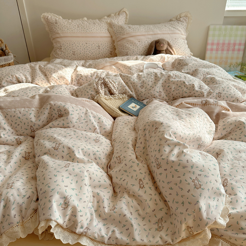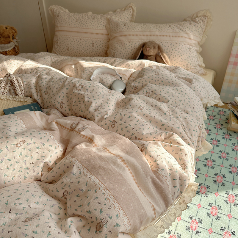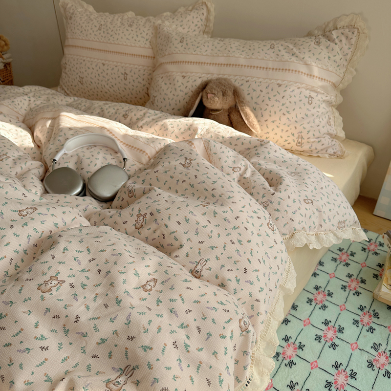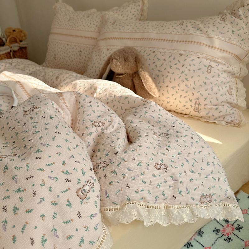2025新款春日碎花云朵泡泡纱花边套件 碎花小兔