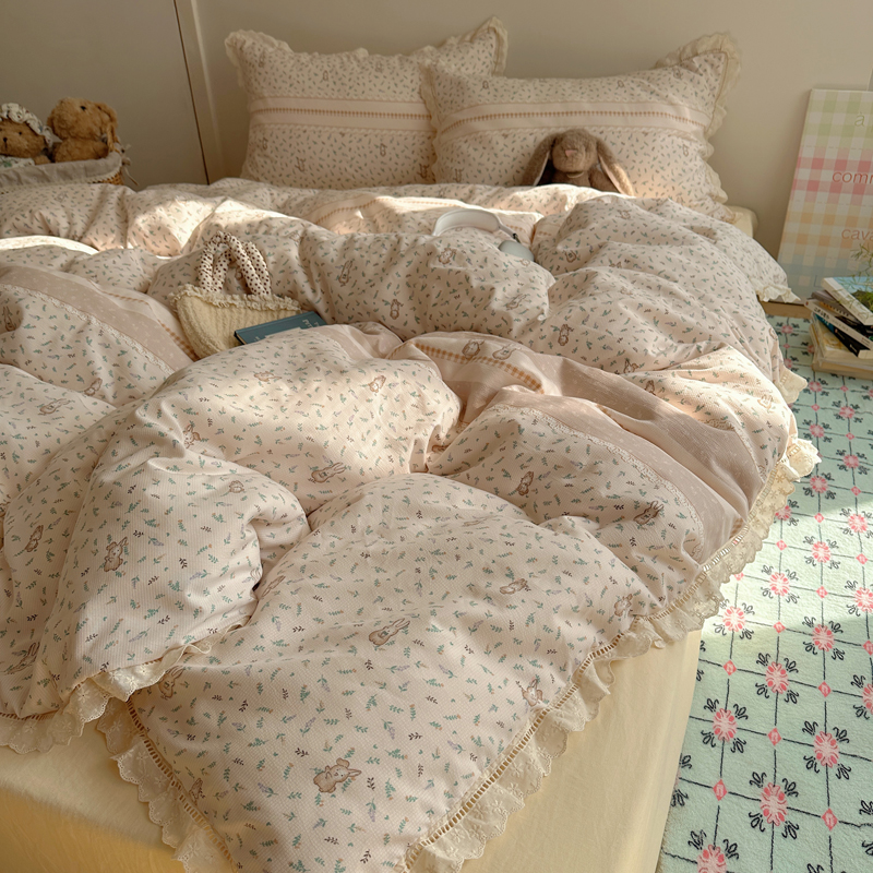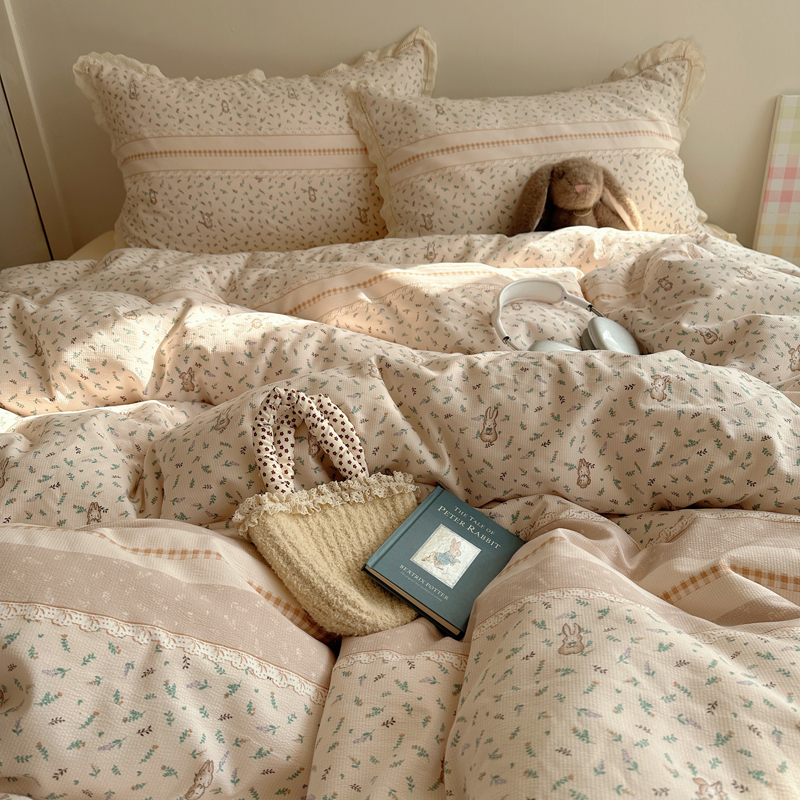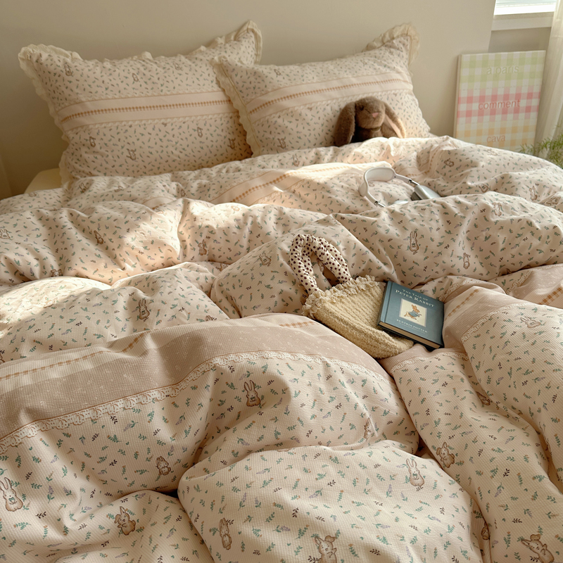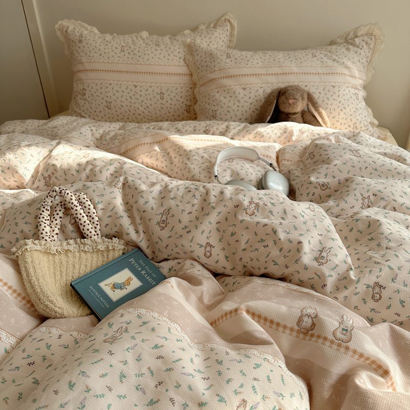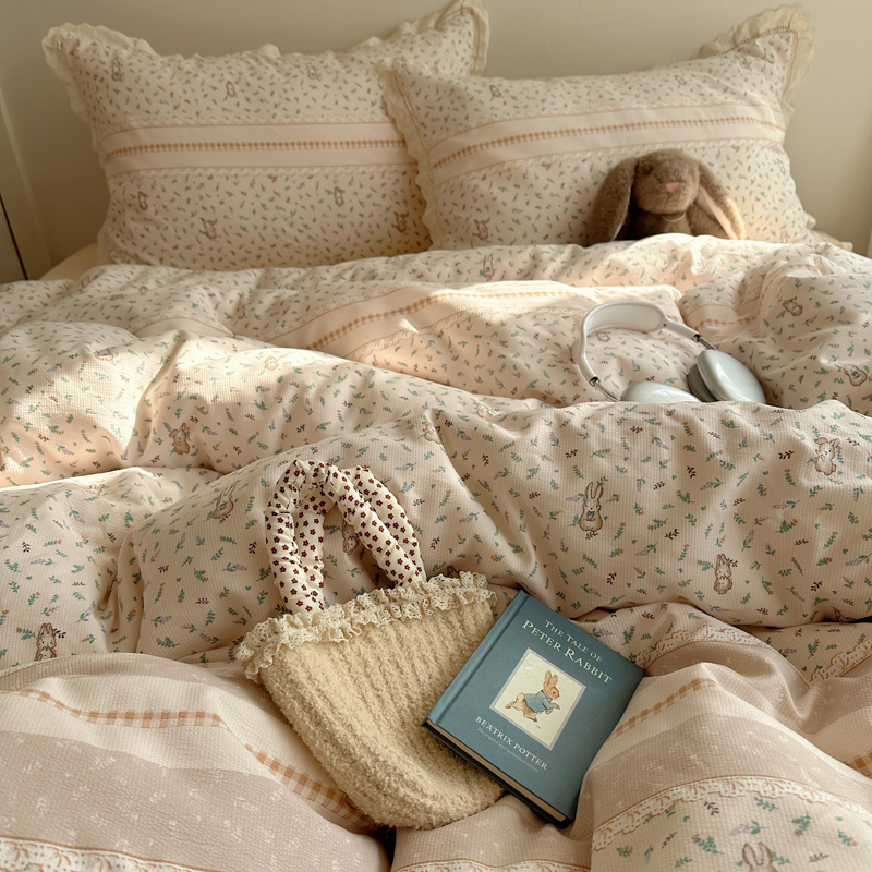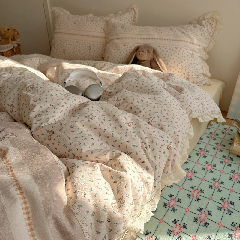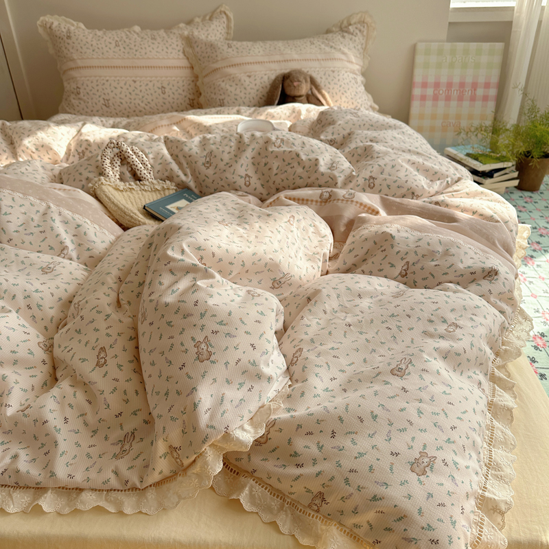 2025新款春日碎花云朵泡泡纱花边套件 碎花小兔