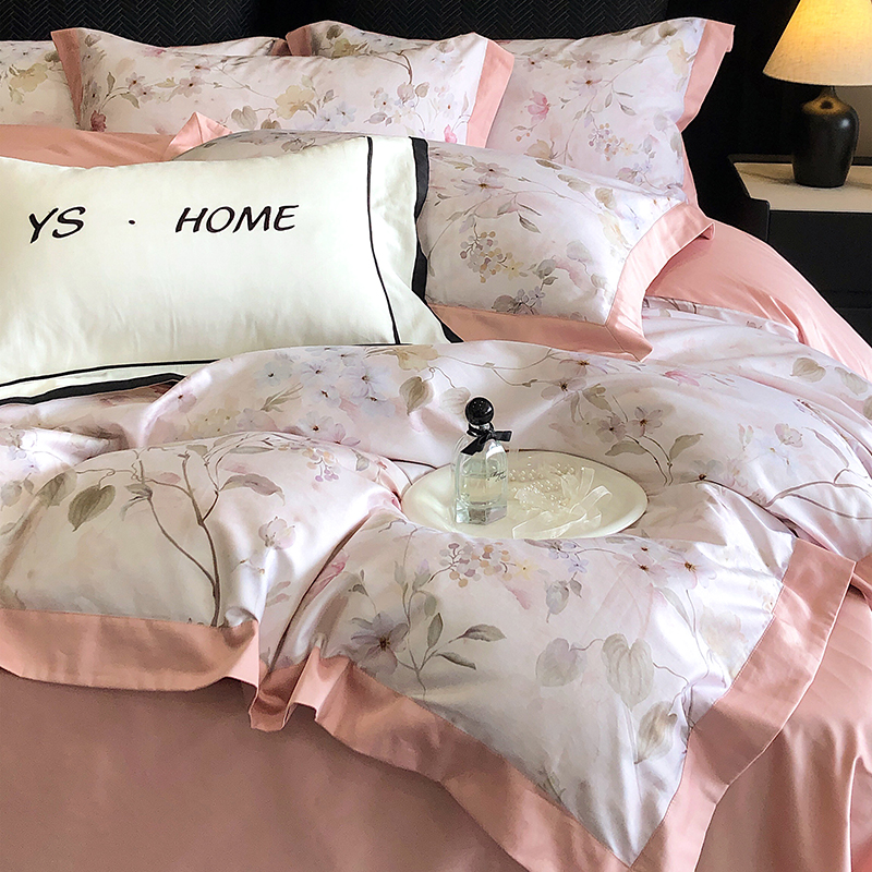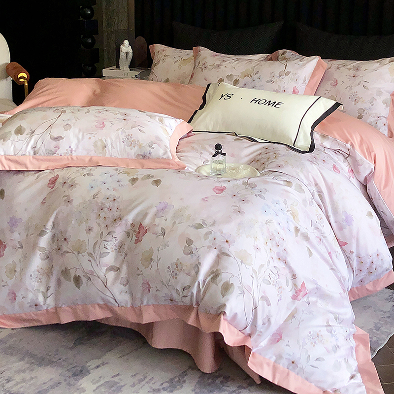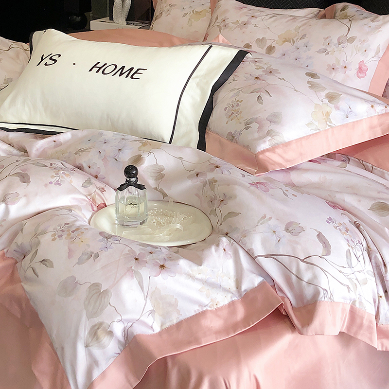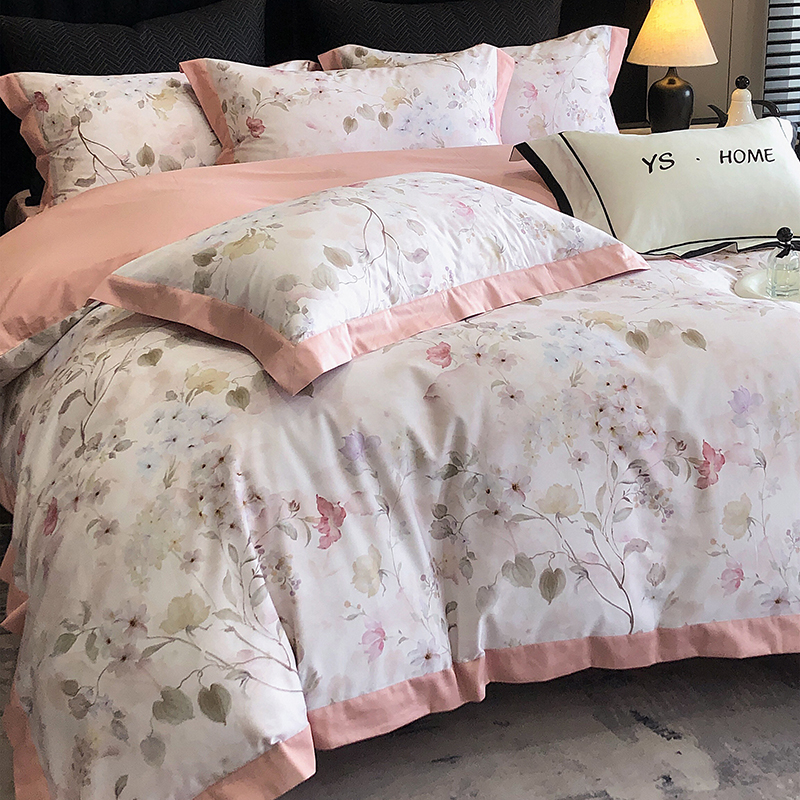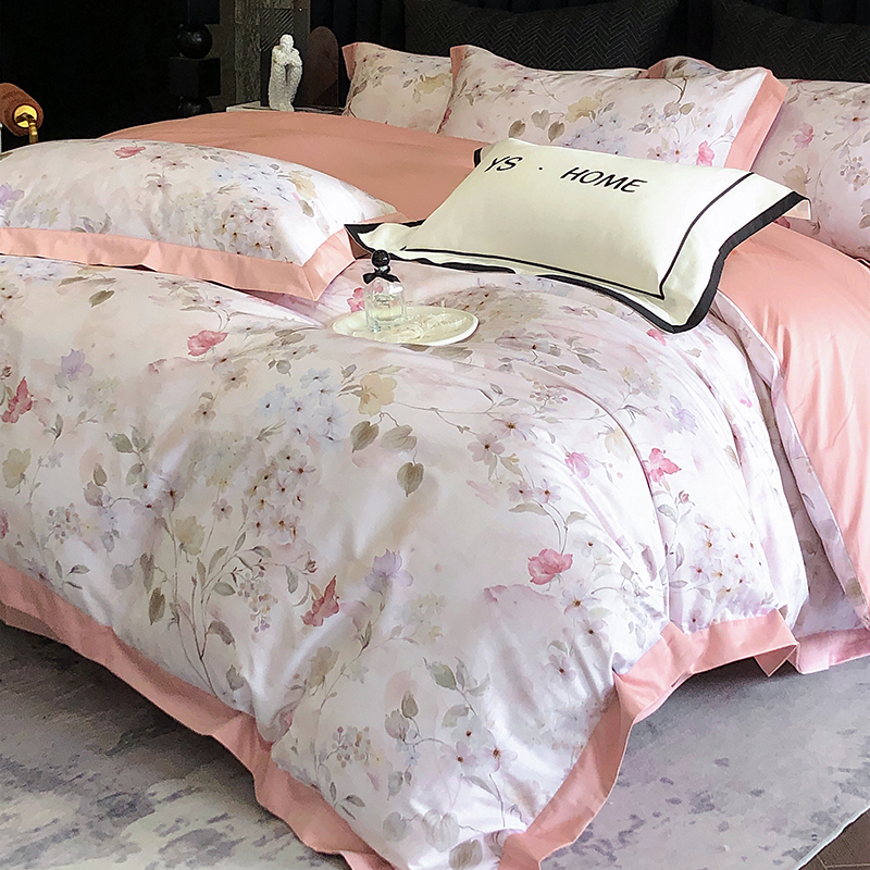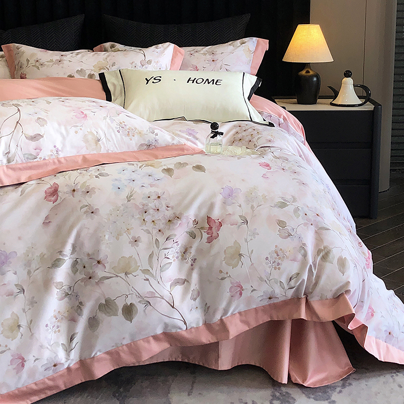 商品名称:薏思家纺 2025新款100支长绒棉数码印花飞边款四件套 玉玲珑-粉