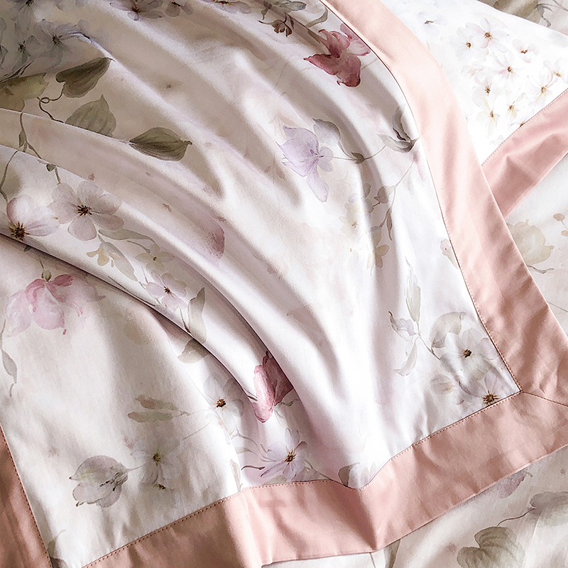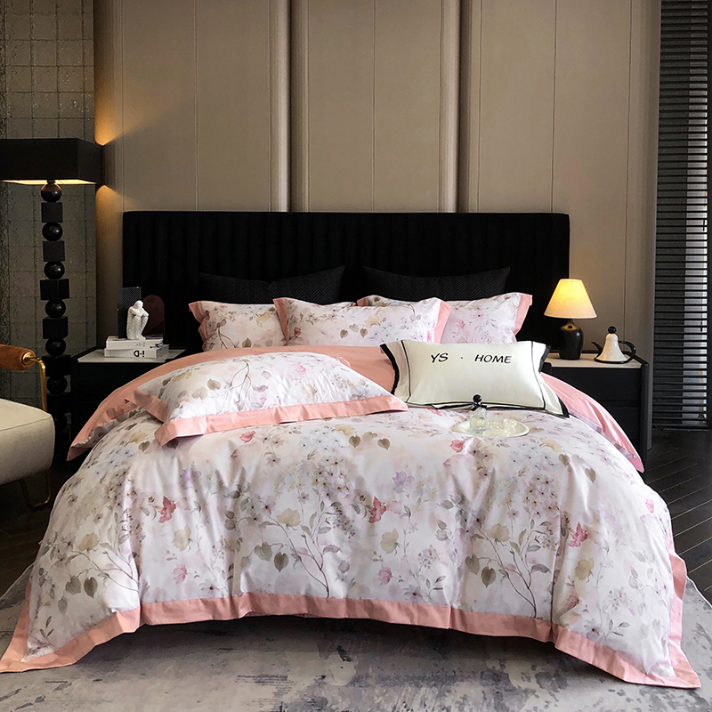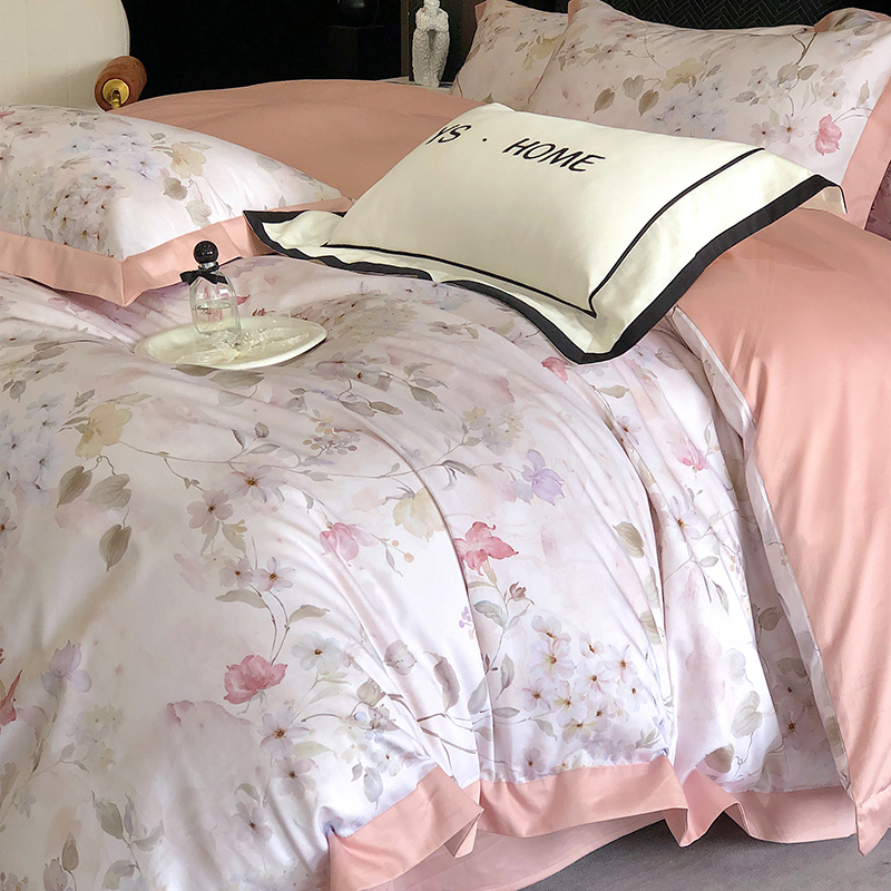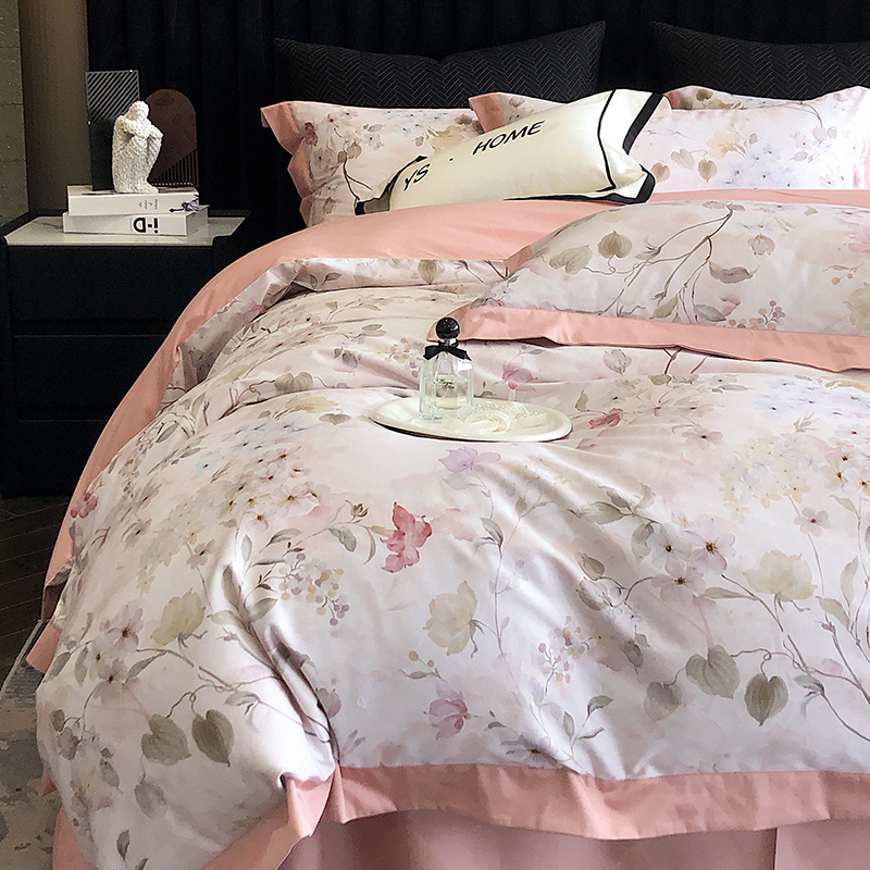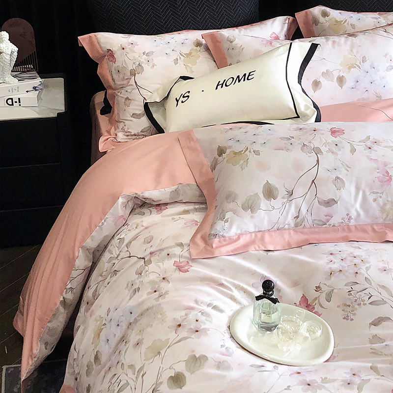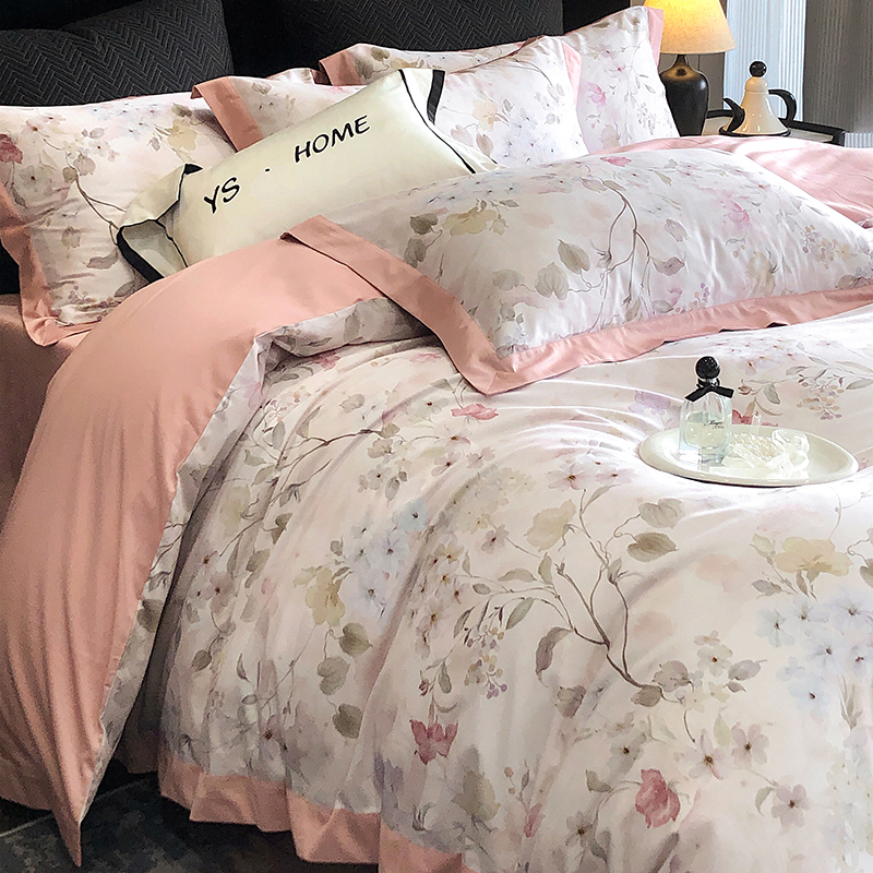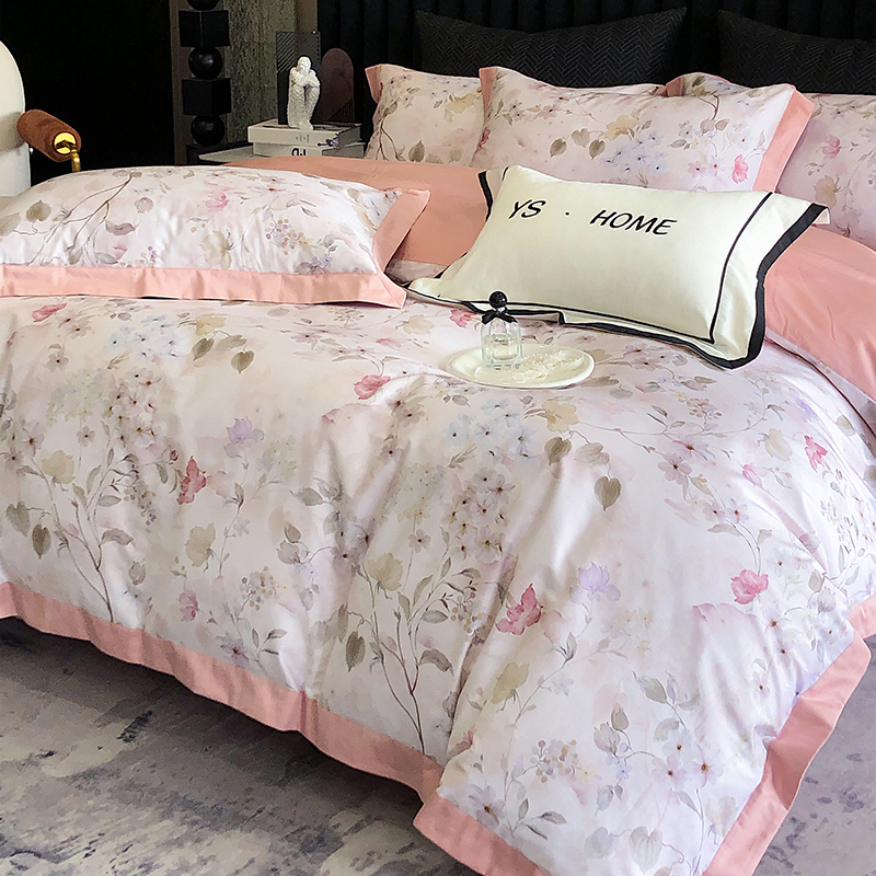 商品名称:薏思家纺 2025新款100支长绒棉数码印花飞边款四件套 玉玲珑-粉