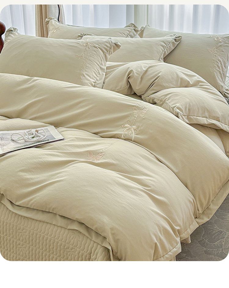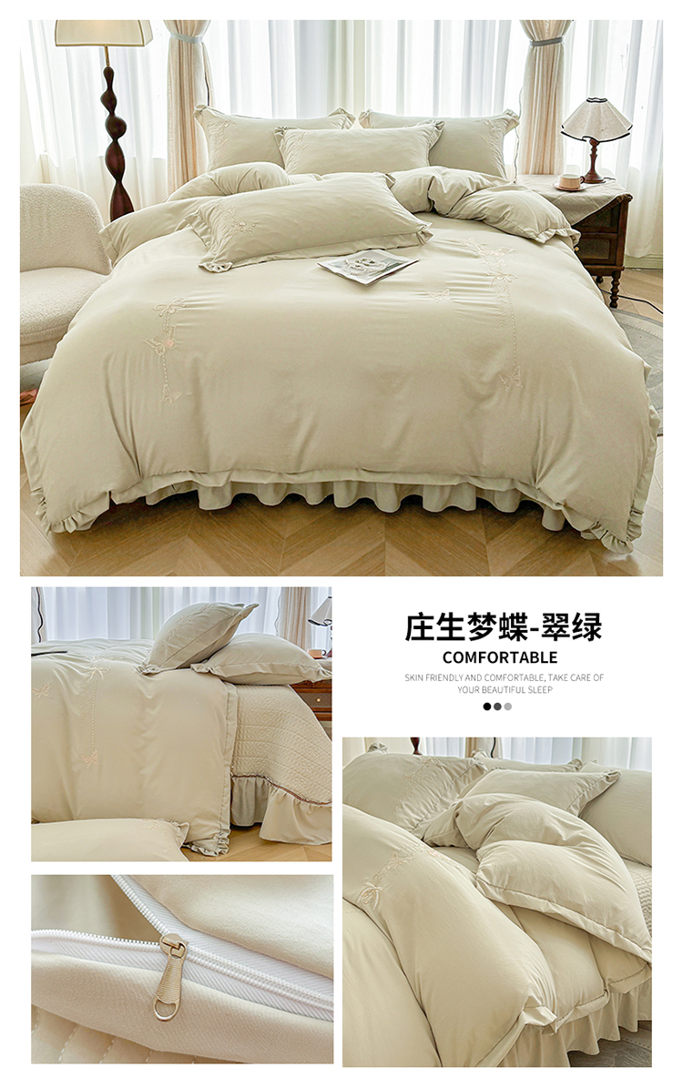 商品名称:恒爱家纺 2025新款糯糯棉庄生梦蝶被套四件套 庄生梦蝶-翠绿