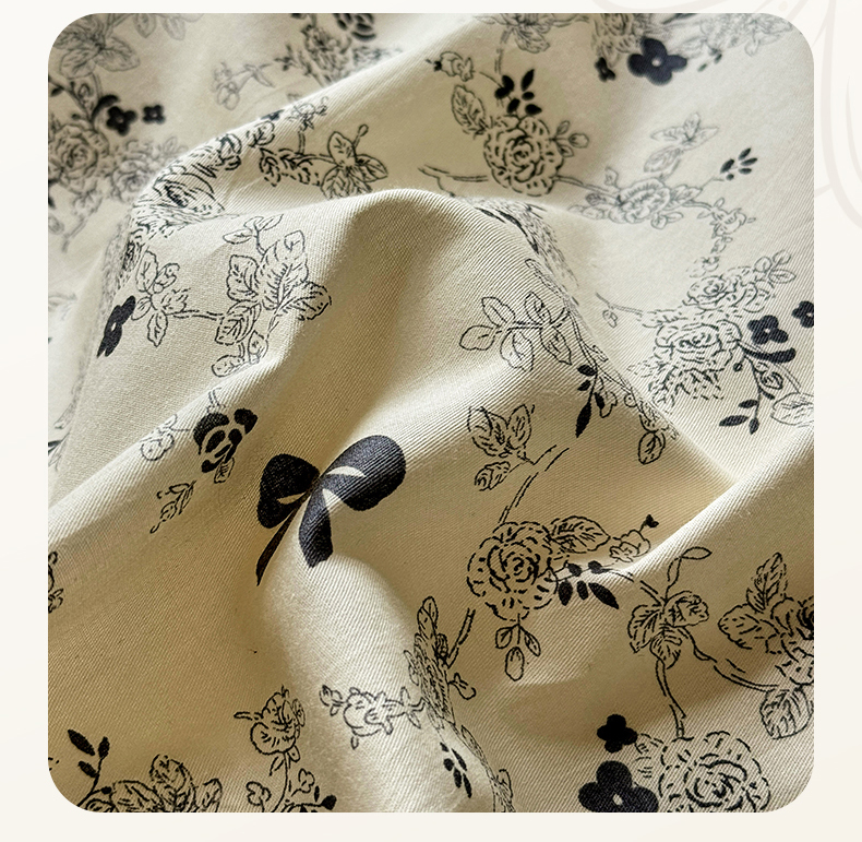 商品名称:(总)宅家居 2025新款爆款轻法式赫本风复古印花13372纯棉四件套韩式黑色花边40支全棉三件套