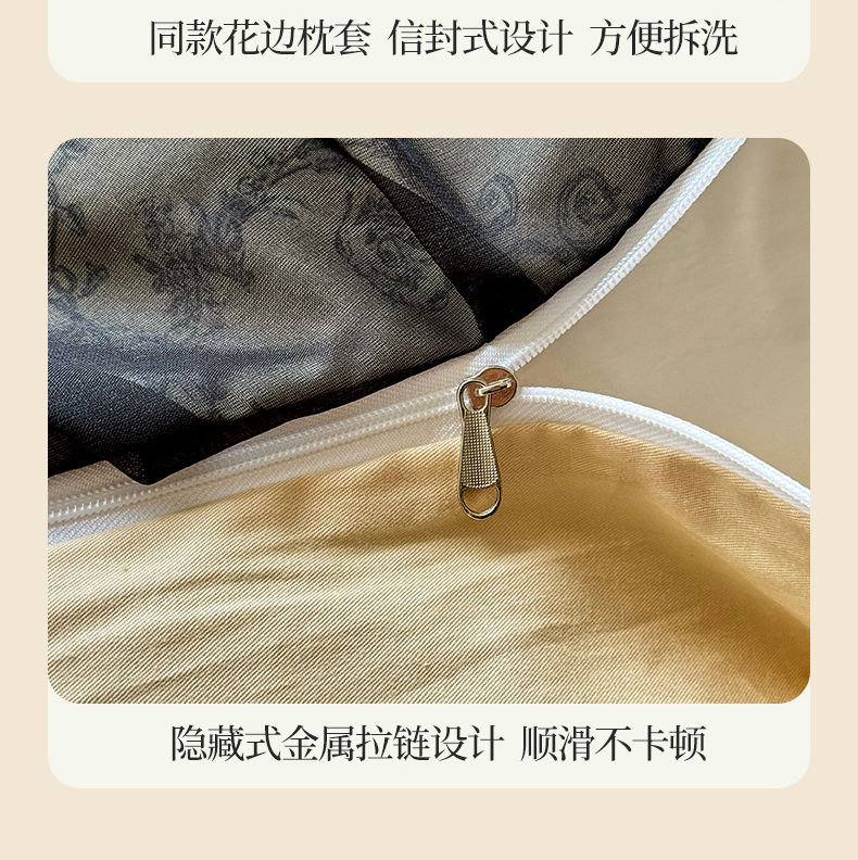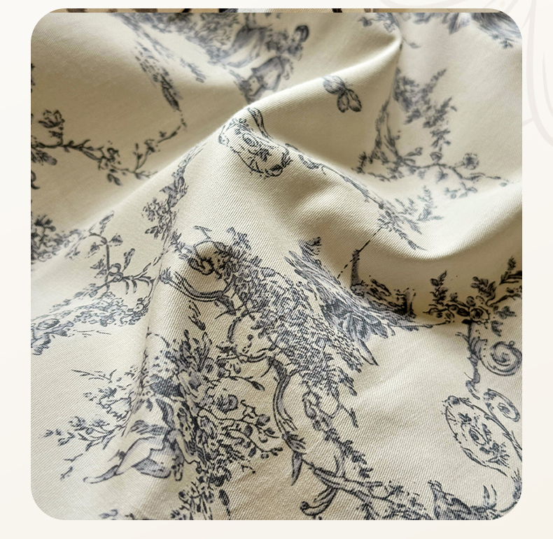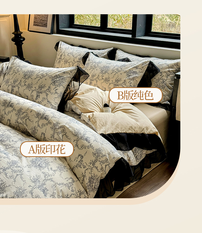 宅家居 2025新款爆款轻法式赫本风复古印花13372纯棉四件套韩式黑色花边40支全棉三件套 醉颜