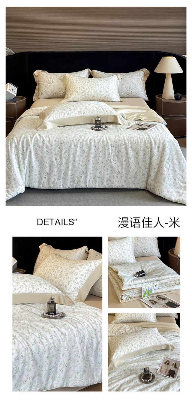 当前位置: 91家纺网 > 商品网购 > 床品套件 > 四件套 > 其它四件套 > 2025春夏新款简奢款嵌绳莱赛尔数码印花夏被四件套单夏被床笠床单款 漫语佳人 米