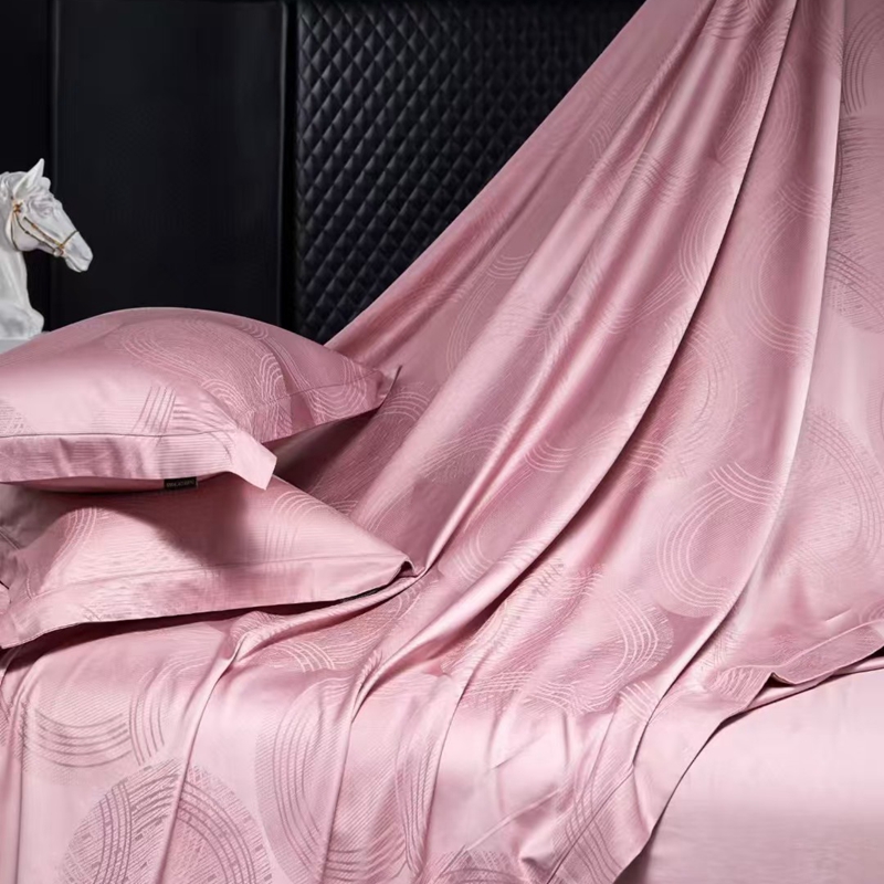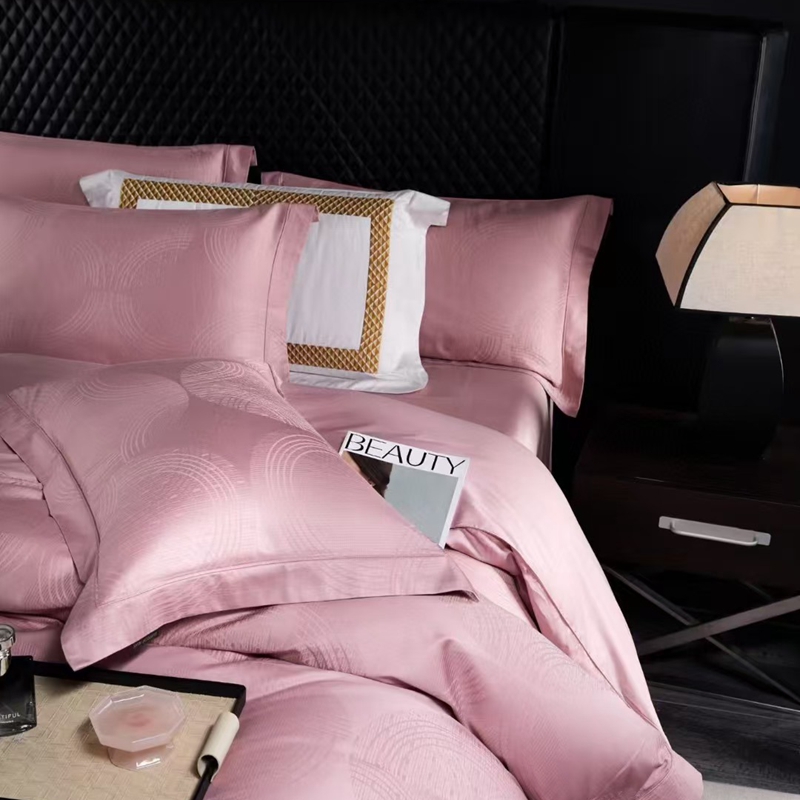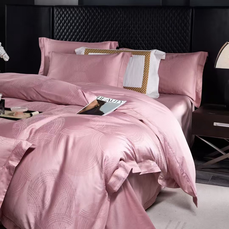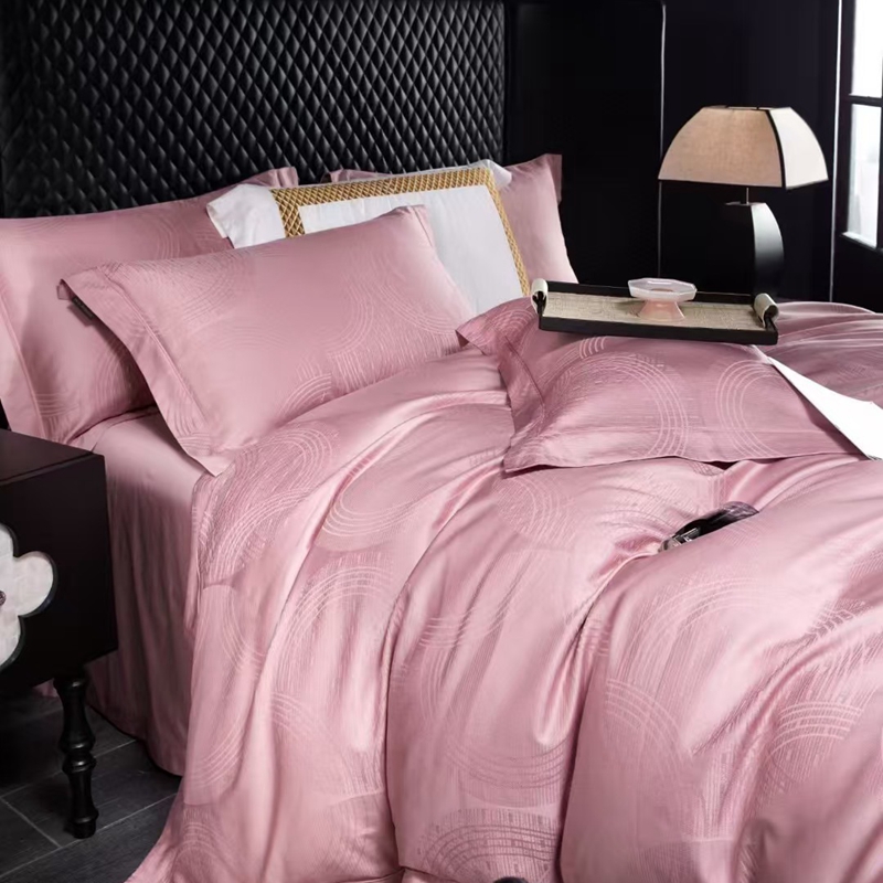 商品名称:玖琳家纺 2025新款100s提花高支高密新疆长绒棉四件套 幻圆梦境 胭脂粉