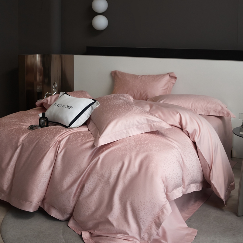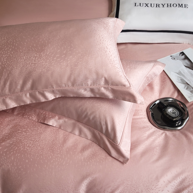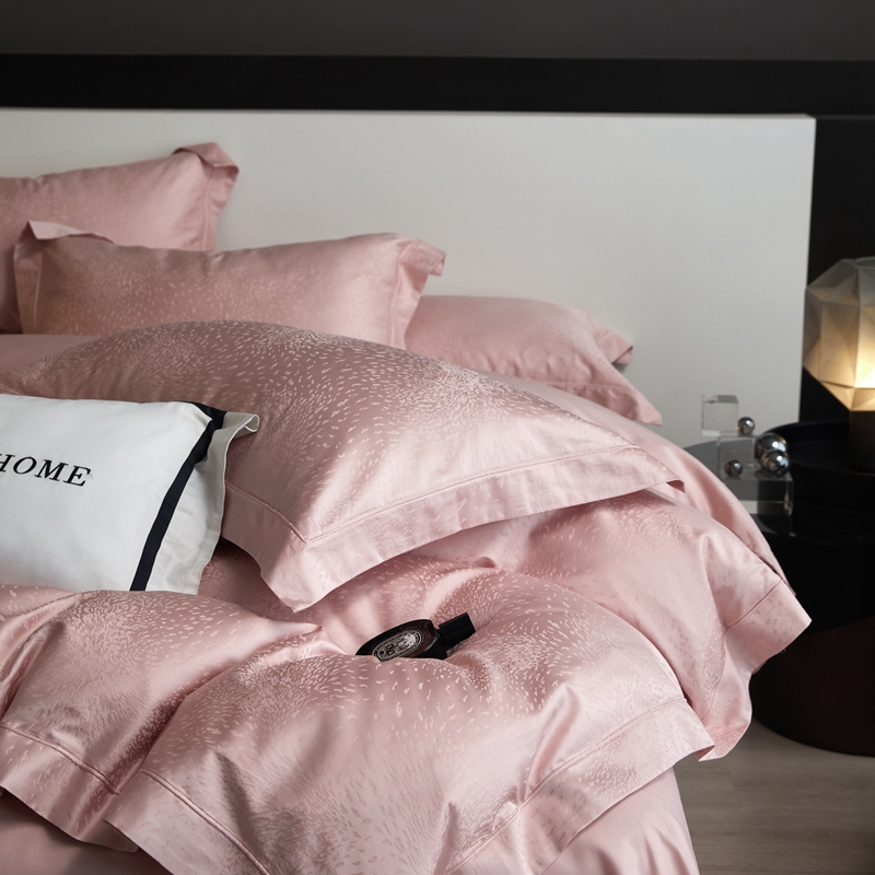 淳绵家居 2025新款50*50S长绒棉贡缎提花手工立体埋绳工艺四件套(礼盒包装)星耀(樱花粉)