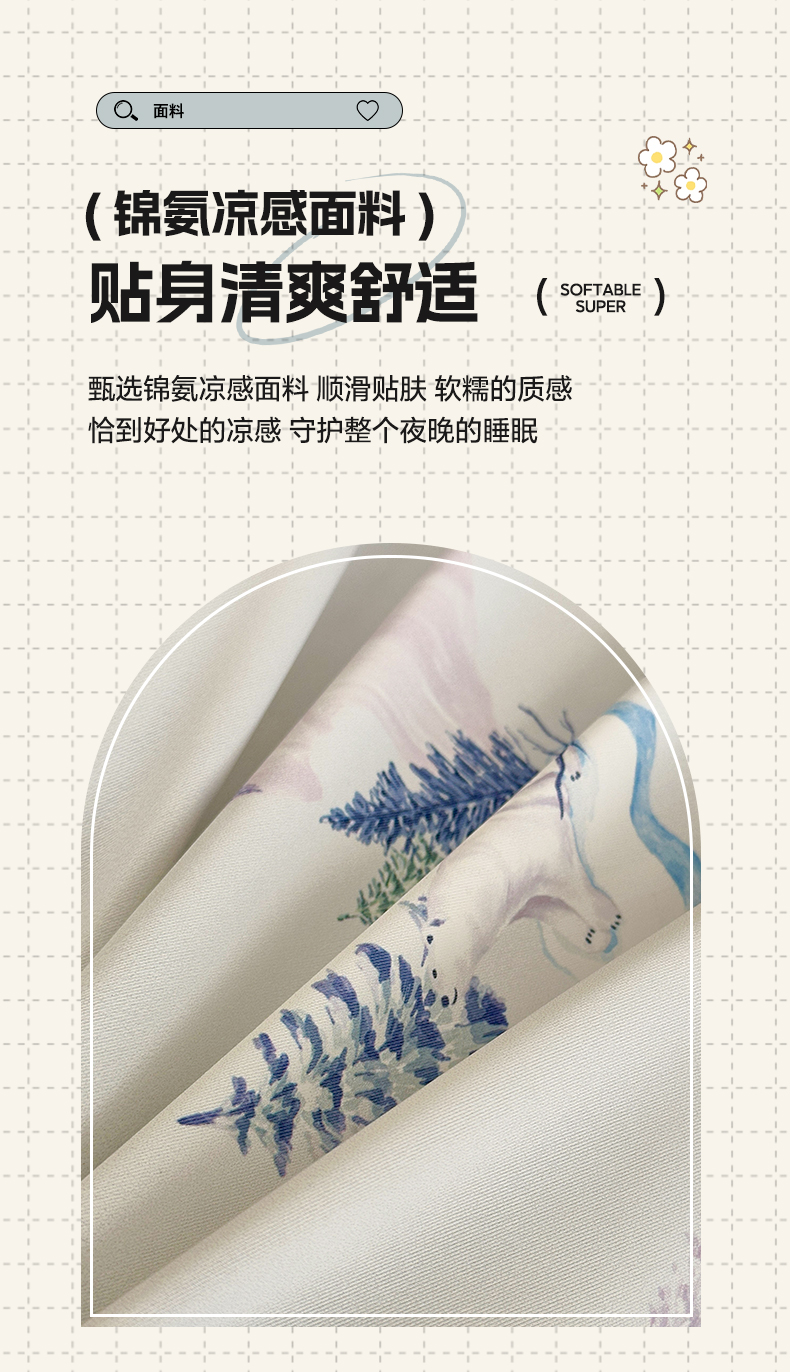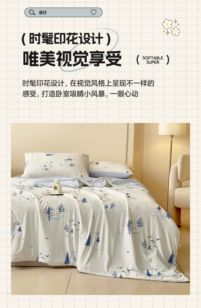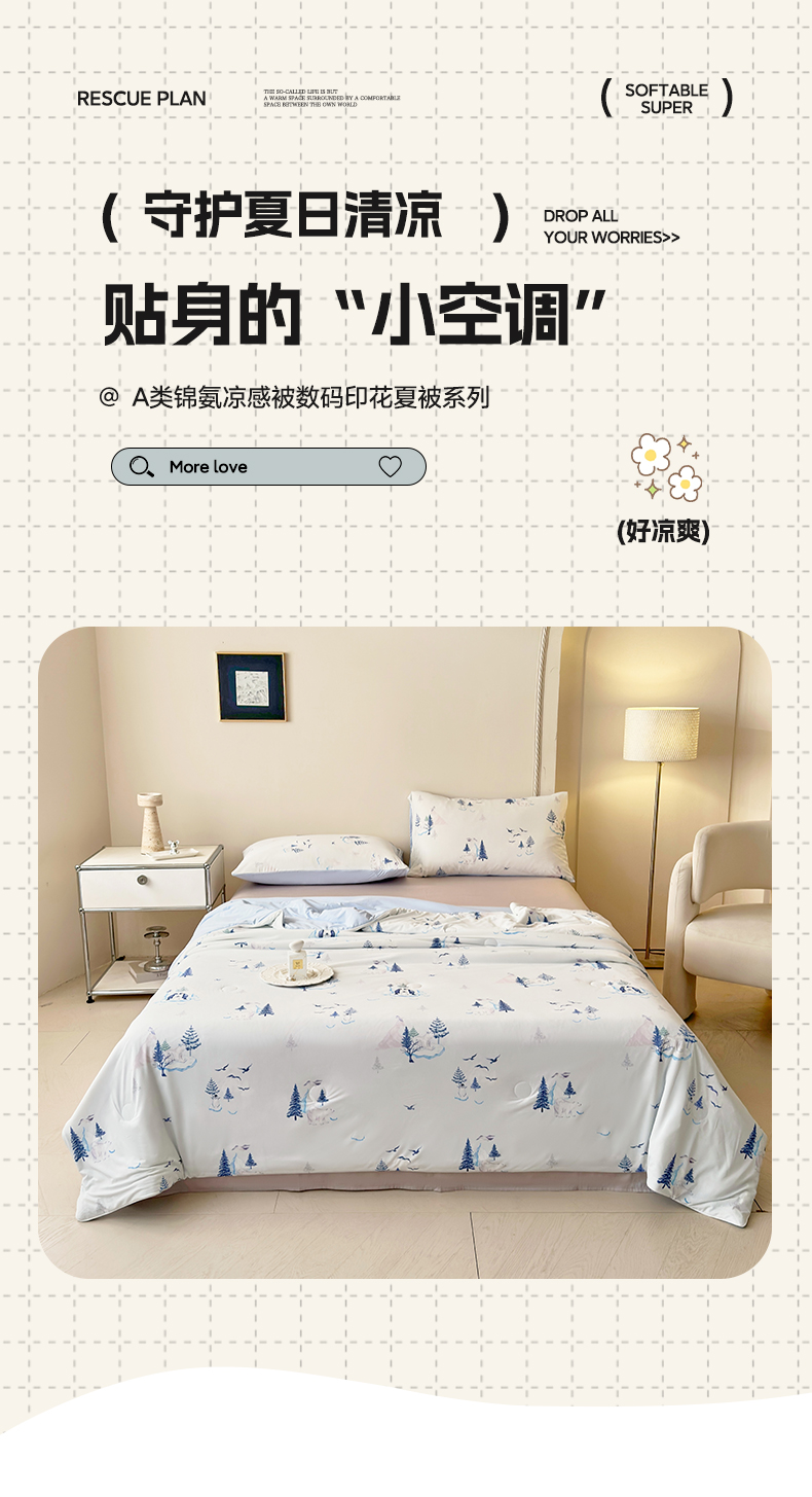 商品名称:莱登卡奴 2025新款A类锦氨凉感被数码印花夏被 极地风情水兰