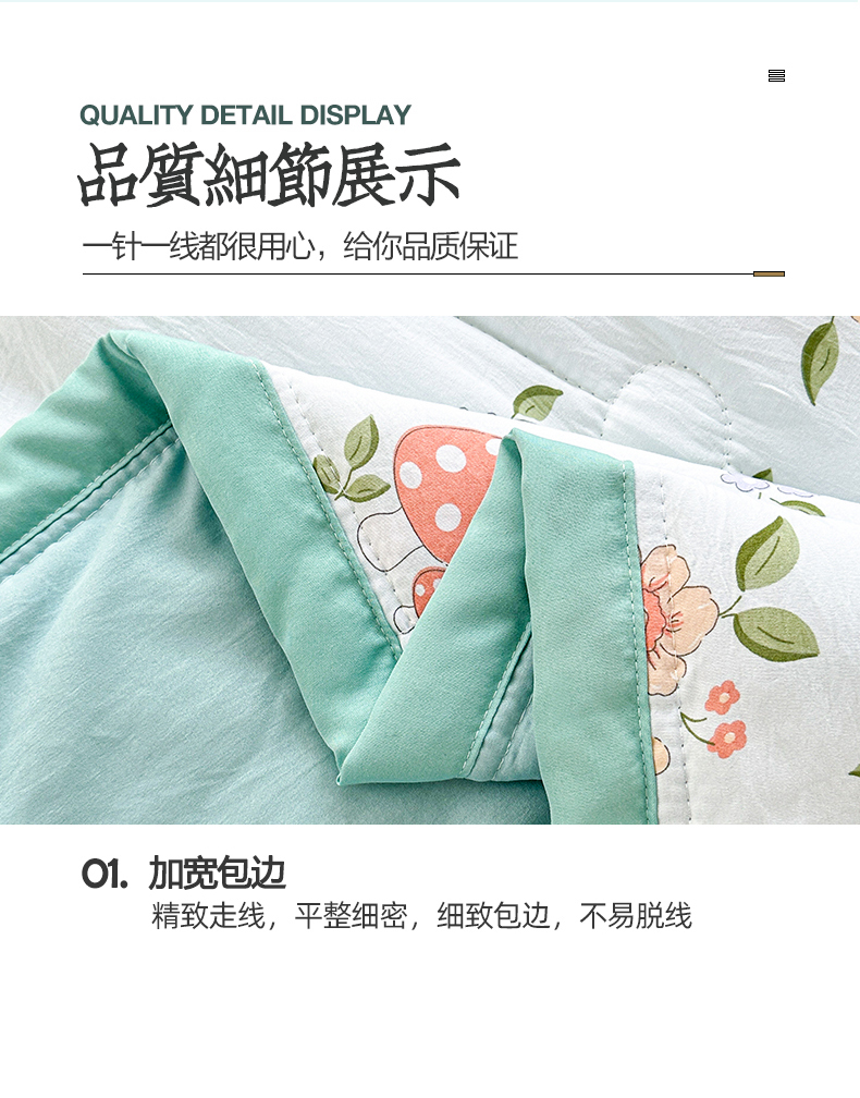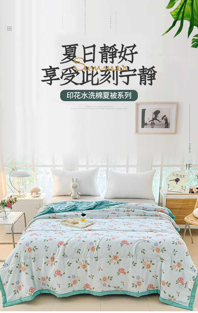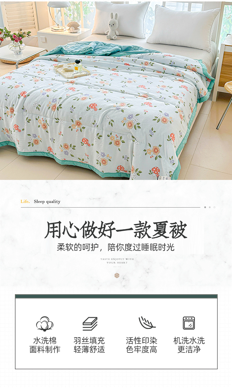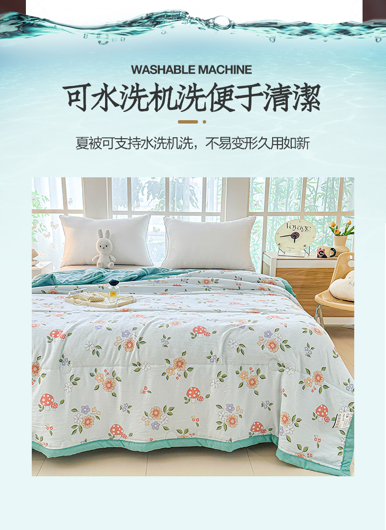 当前位置: 91家纺网 > 商品网购 > 被子 > 夏被 > 好欣怡家纺 2026新款水洗棉夏被空调被被子被芯印花小清新夏凉被直播热款 水洗棉包边款-小蘑菇