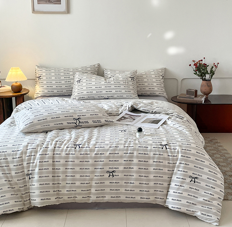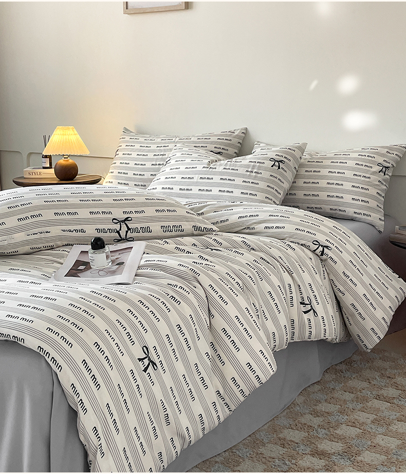 诺梵家纺 2025新款有氧双层纱印花四件套 情结-灰