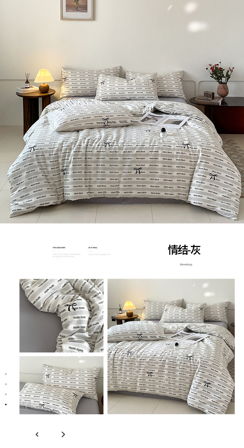 商品名称:诺梵家纺 2025新款有氧双层纱印花四件套 情结-灰