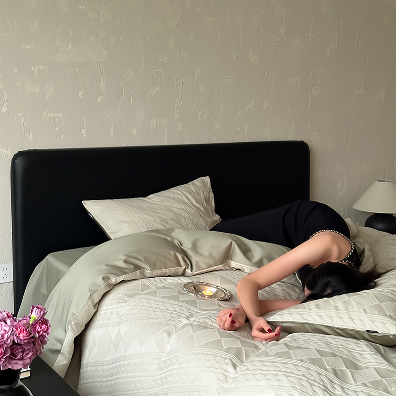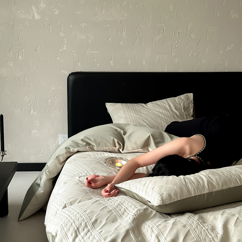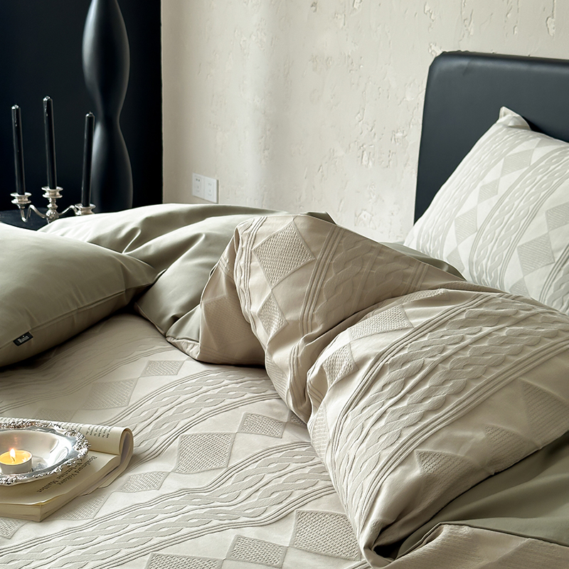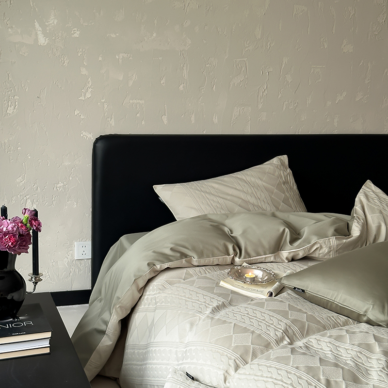 (总)玉宇阁家居 2023新款春夏60支兰精天丝拼色四件套,都市灰香槟,海盐松露,芥末黄香槟,裸粉香槟,茉莉奶绿,浅灰鹅黄,若草乳白
