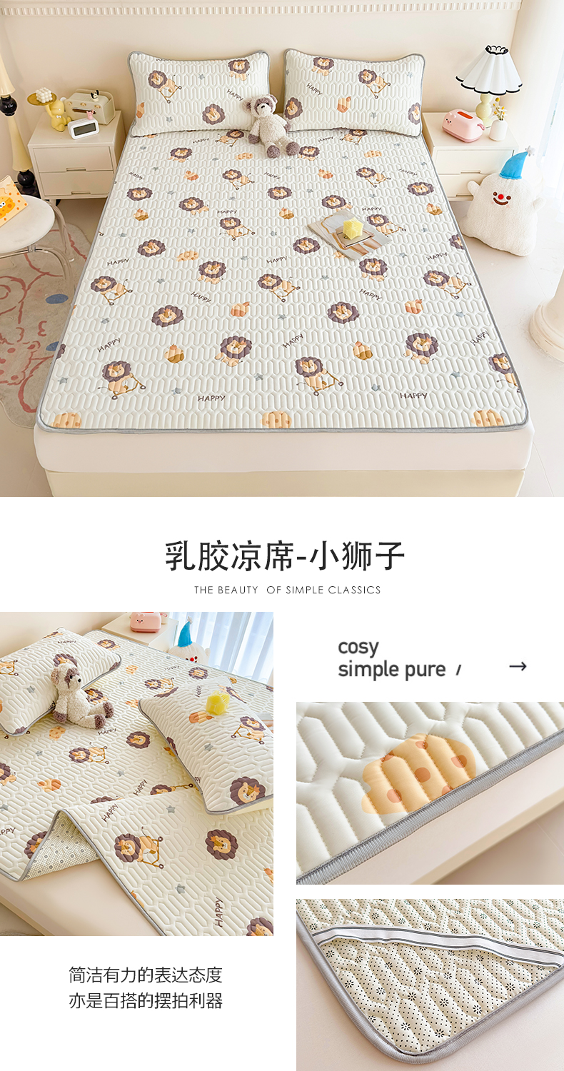 商品名称:雯豆2025夏季新品0.4乳胶凉席平铺款三件套凉感丝小清新印花席梦思床罩 乳胶凉席-趣多多