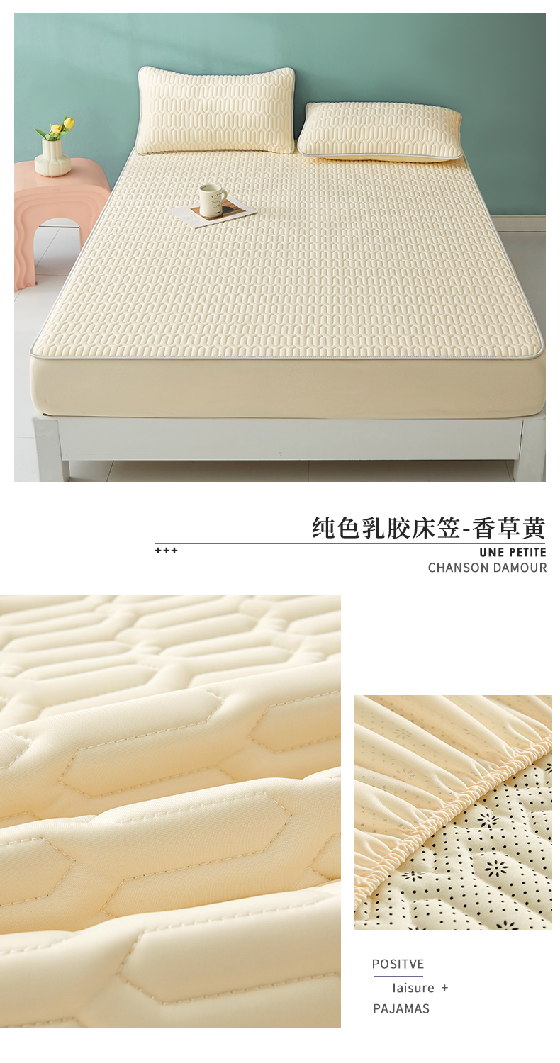 • 91家纺网 家纺一手货源 找家纺 雯豆2025夏季新品0.4乳胶凉席床笠款三件套凉感丝纯色席梦思床罩 纯色乳胶床笠-香草黄