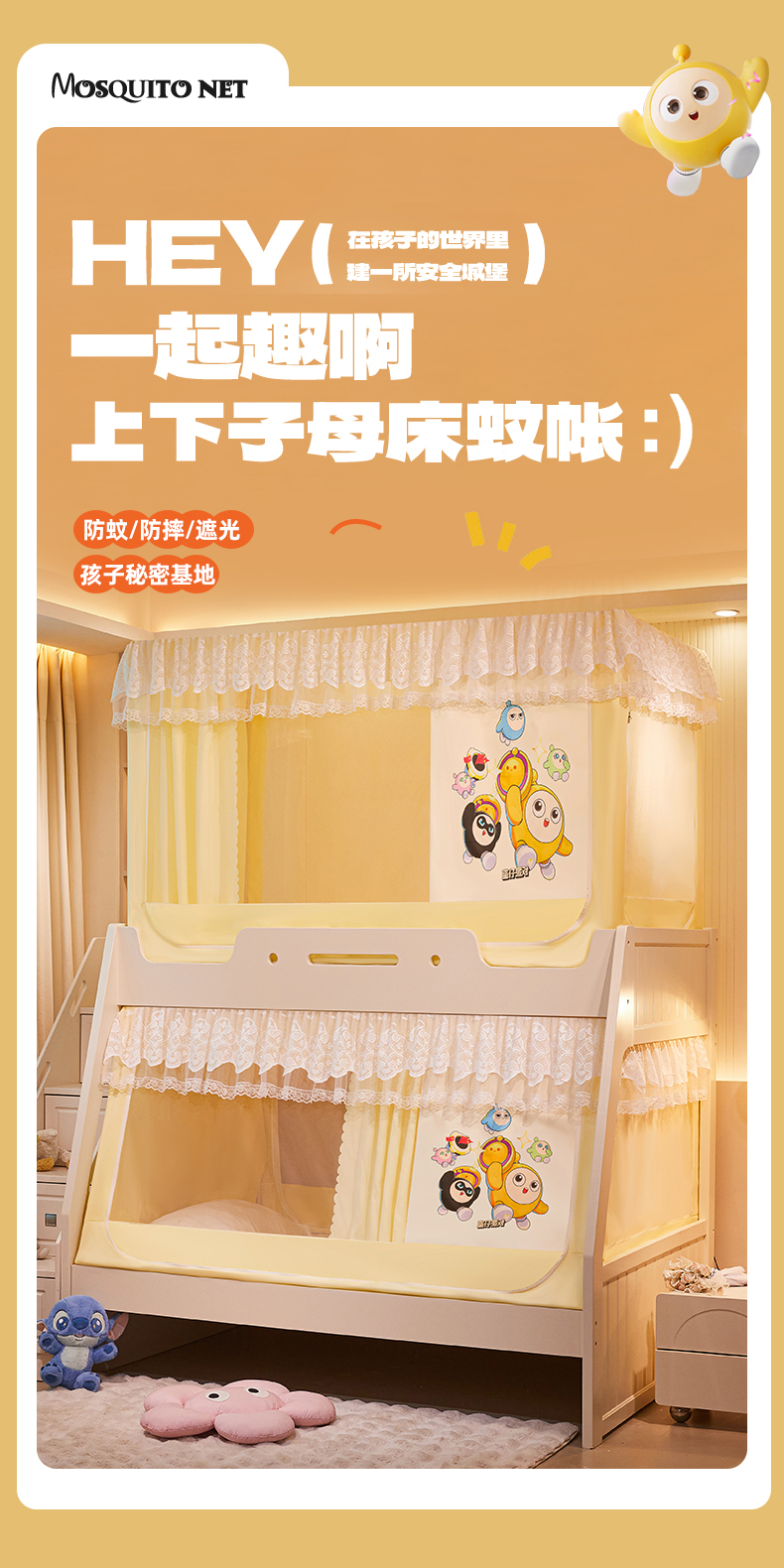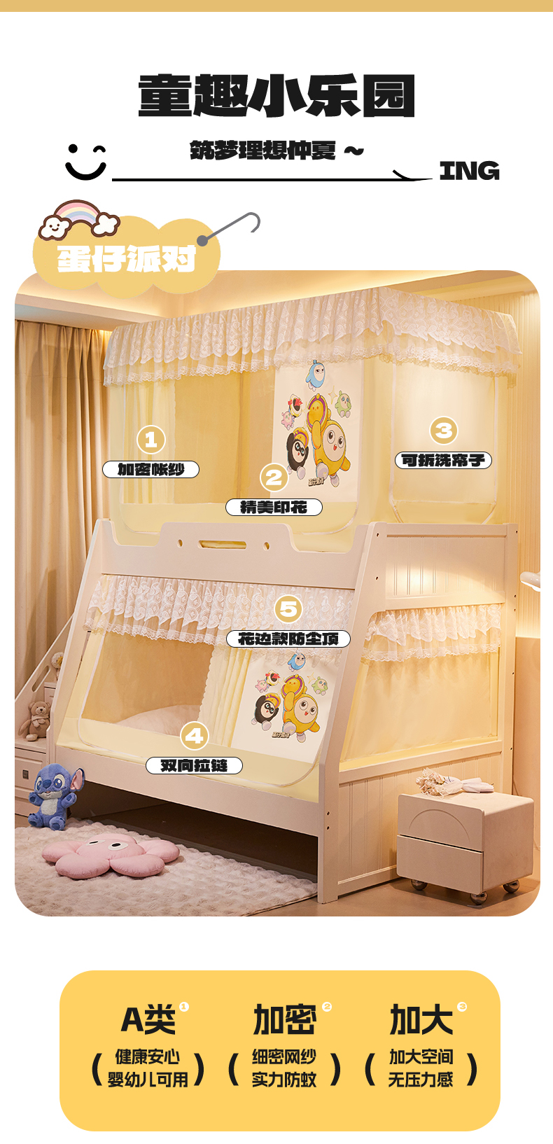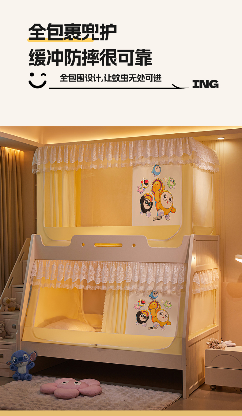 当前位置: 91家纺网 > 商品网购 > 床上用品 > 蚊帐 > 学生蚊帐 > 安金蚊帐 2025新款子母床加长2米蚊帐防尘顶 印花 铁艺全伸缩支架 蛋仔乐园