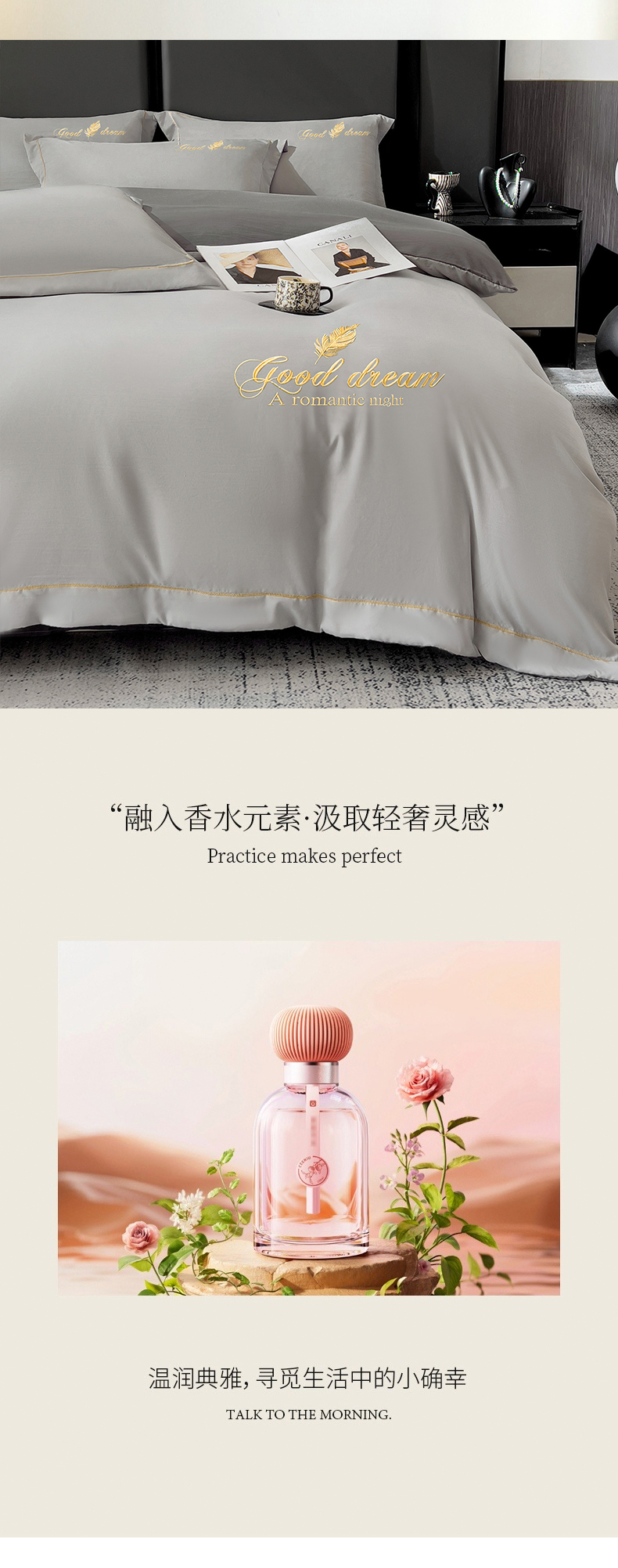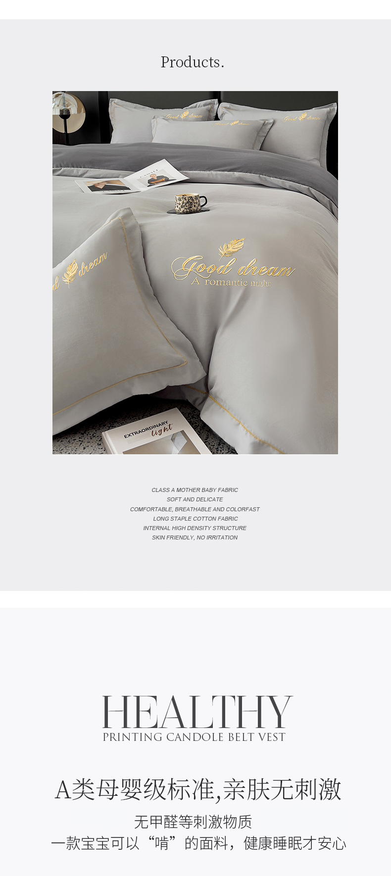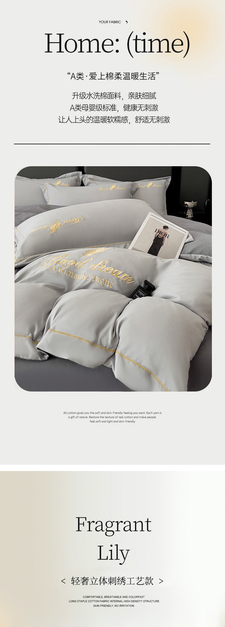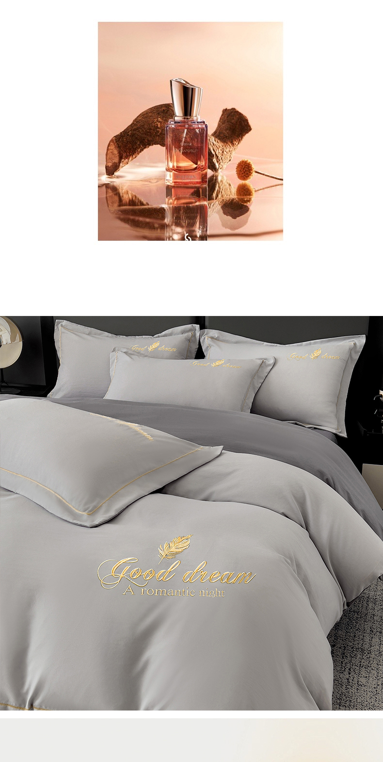 商品名称:灰鲸 2025新款轻奢轻羽刺绣水洗棉套件系列 轻羽-纳多灰+山灰