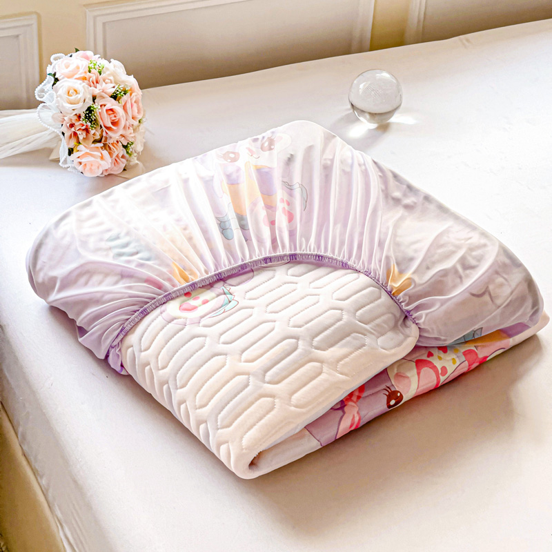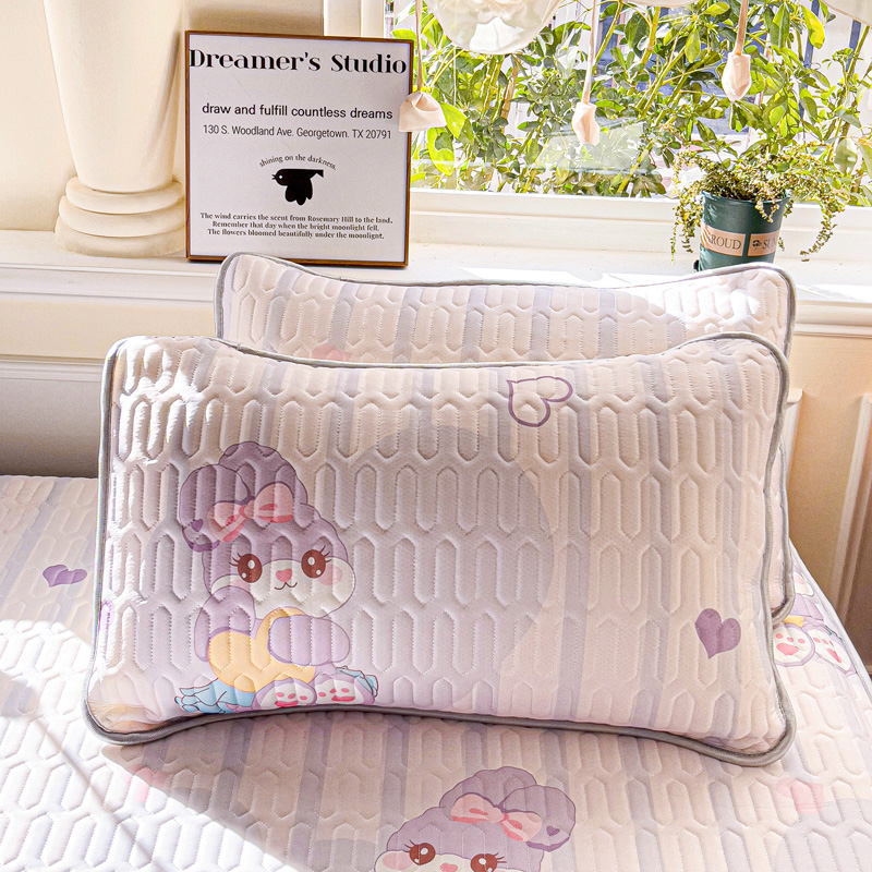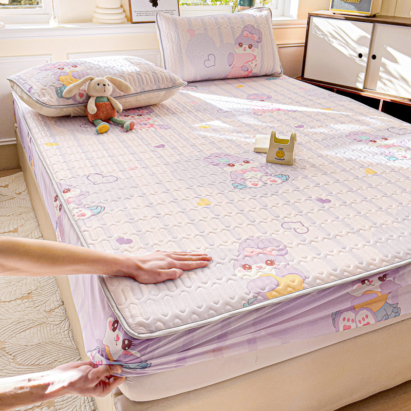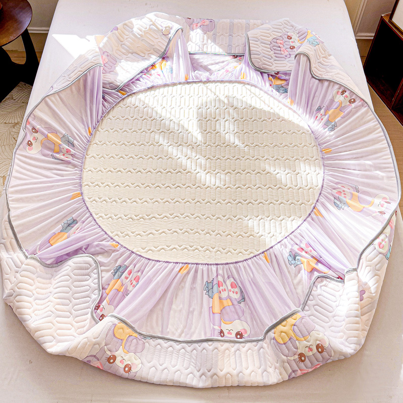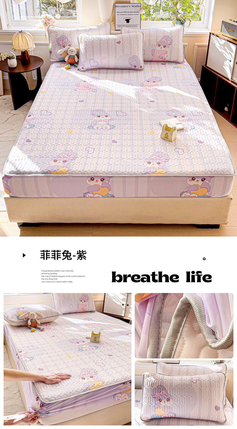• 91家纺网 家纺一手货源 找家纺 富馨莱 2025新款A类凉感丝空气纤维凉席床笠款 菲菲兔-紫