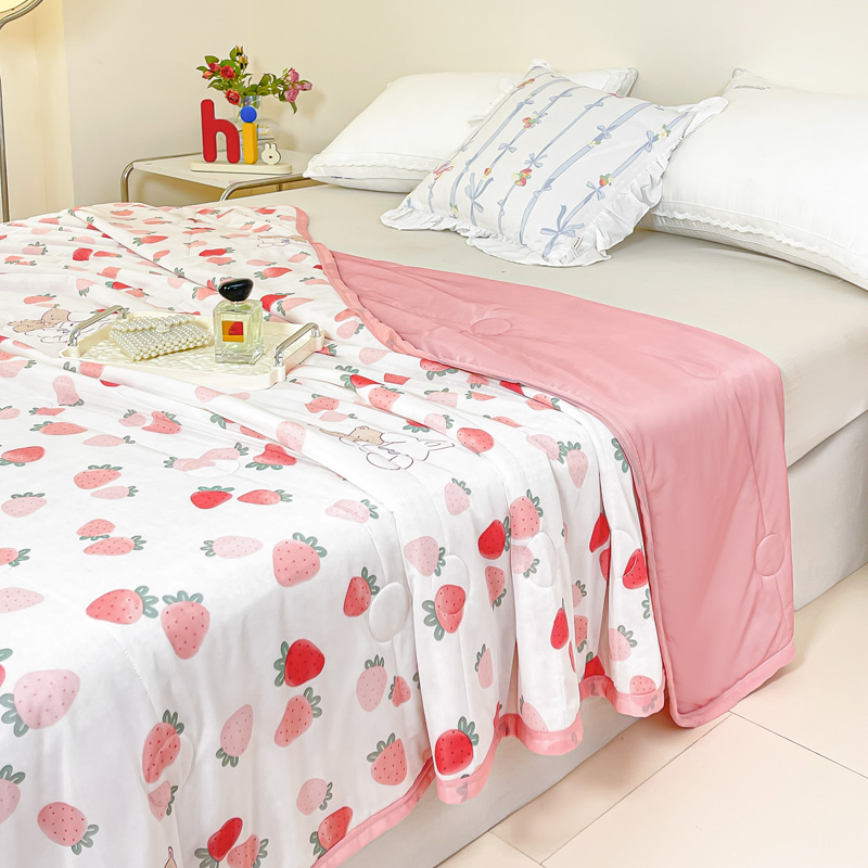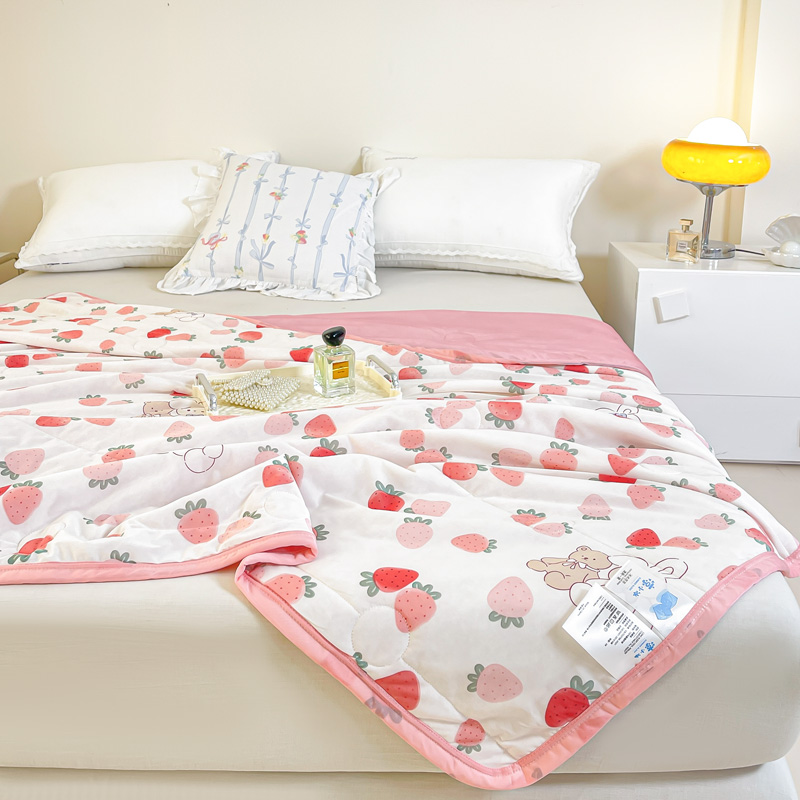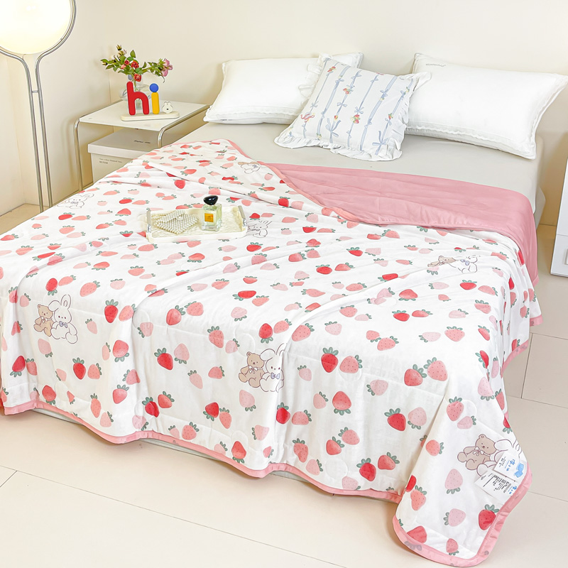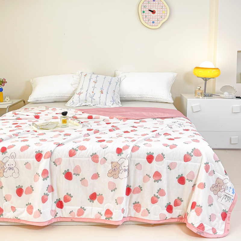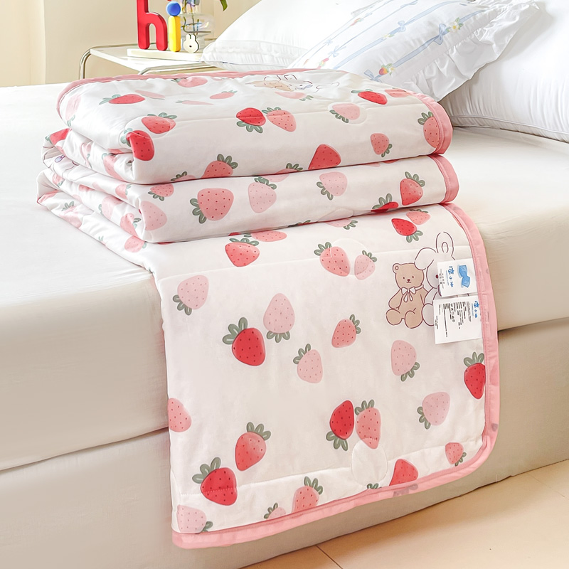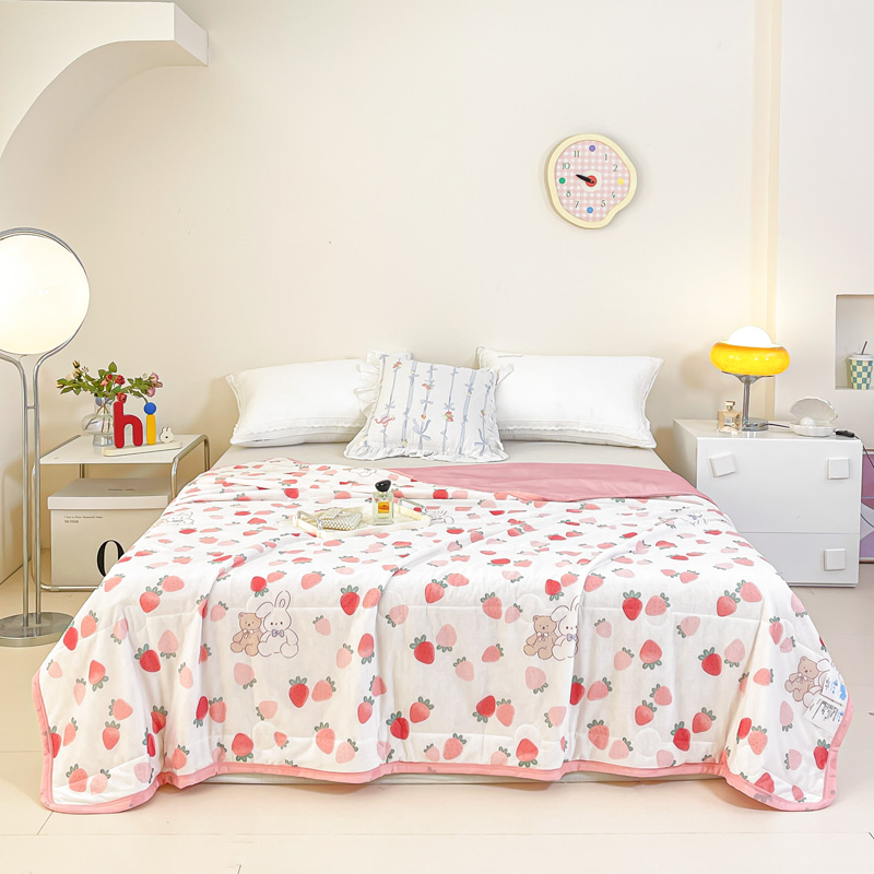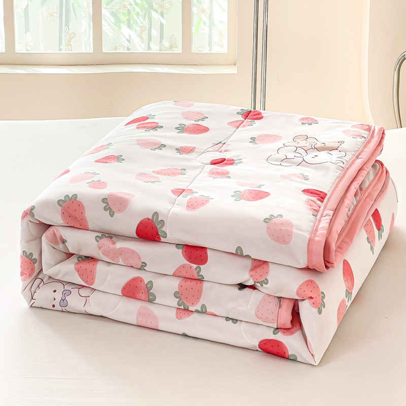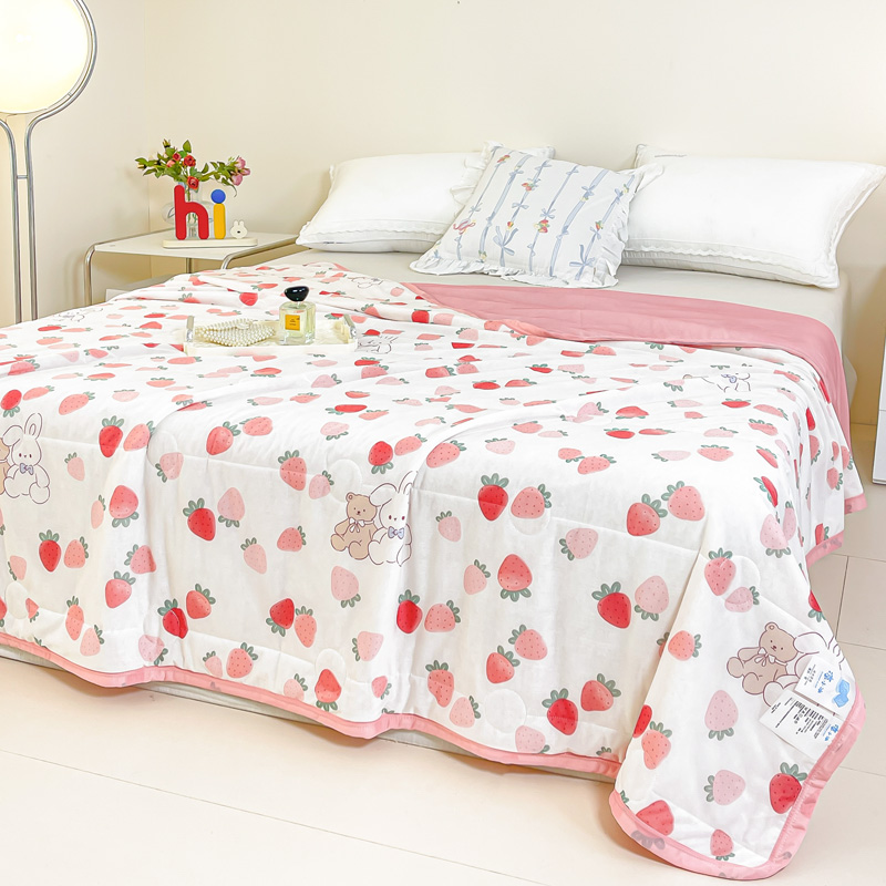 悦织湾家纺2025新款冰丝冰激凌夏被 甜蜜草莓兔