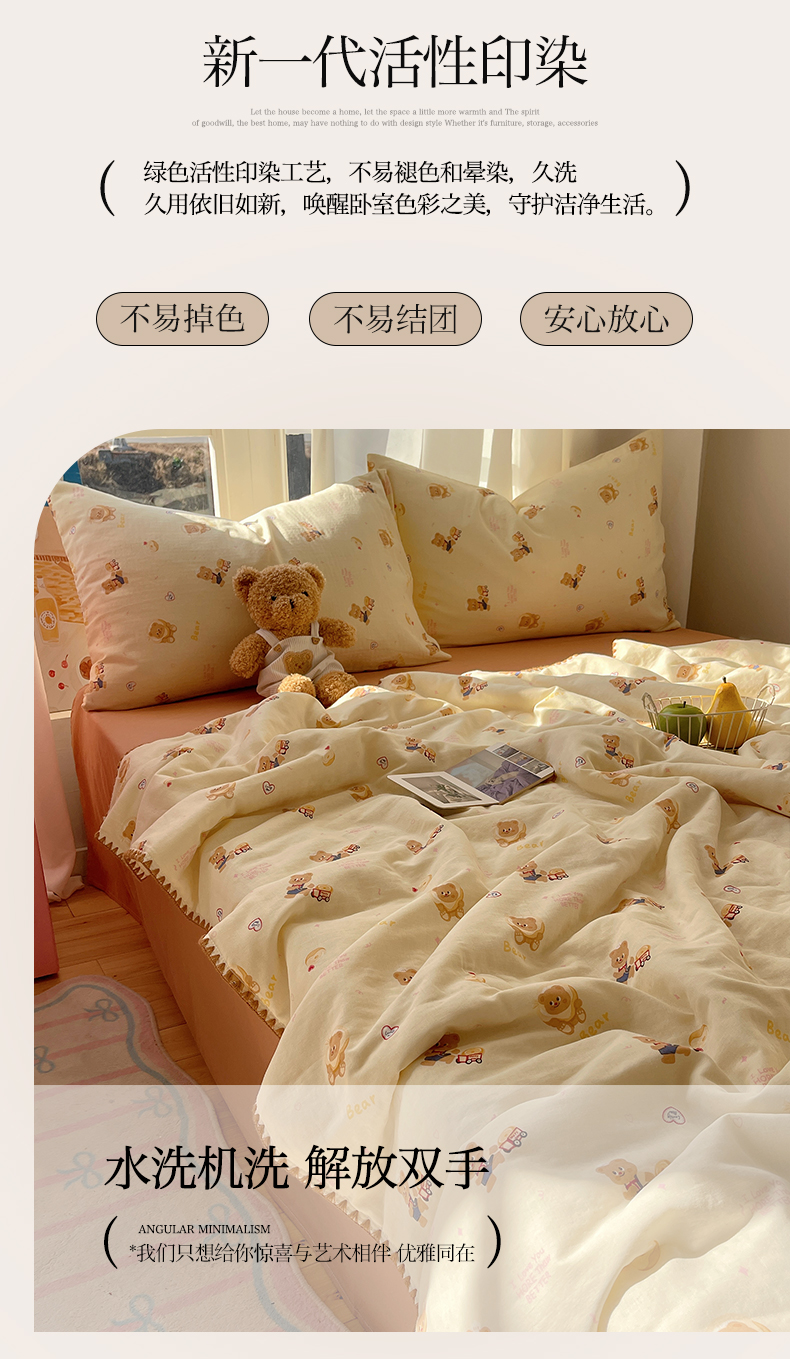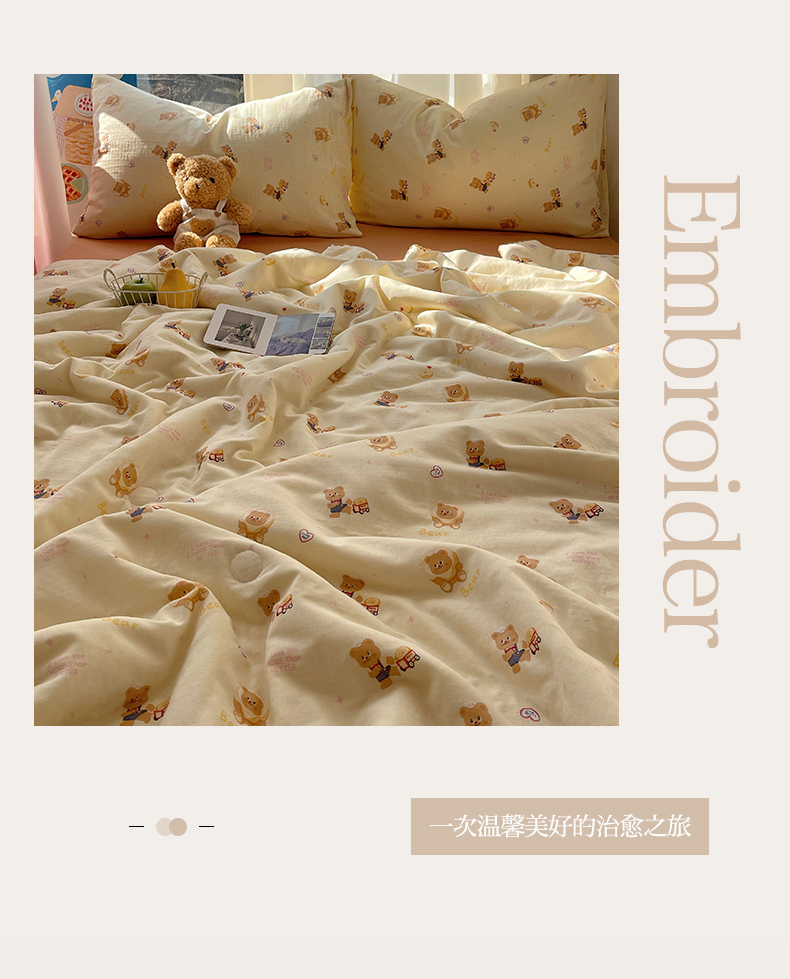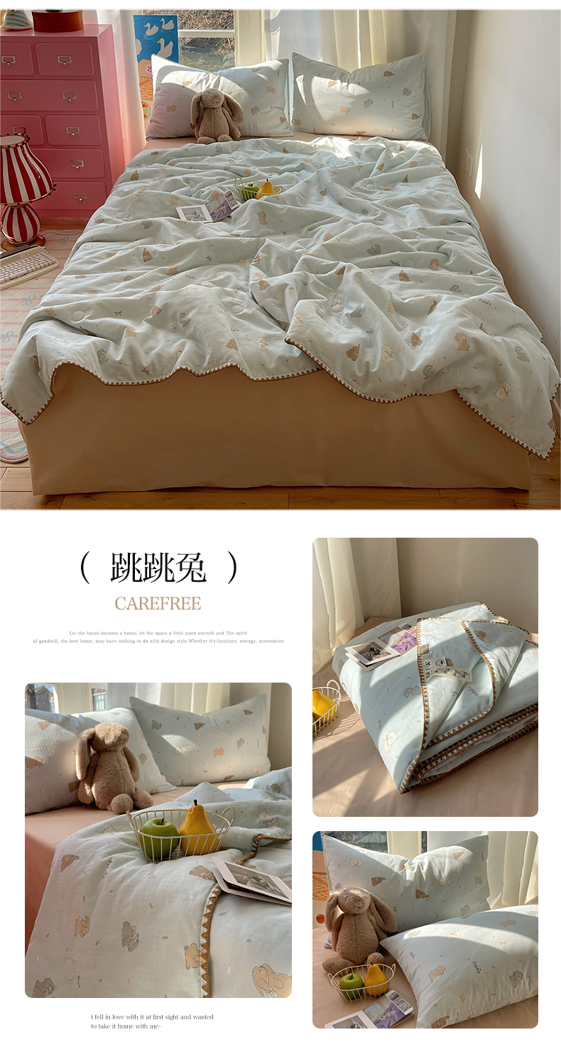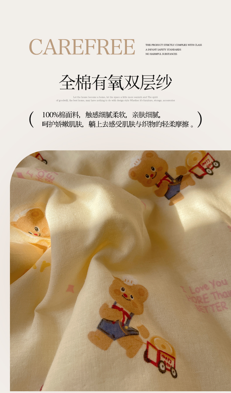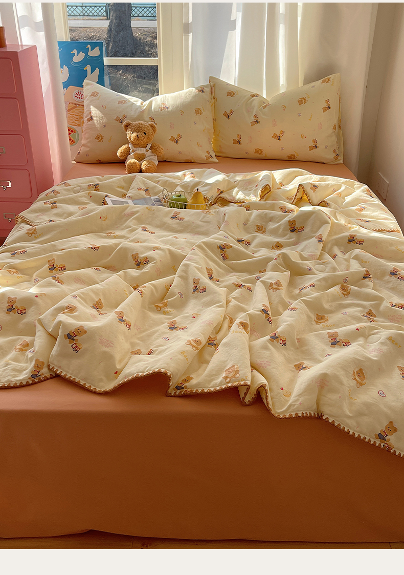• 91家纺网 家纺一手货源 找家纺 一加一 2025A类全棉有氧双层纱印花夏被 可比熊