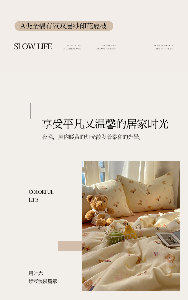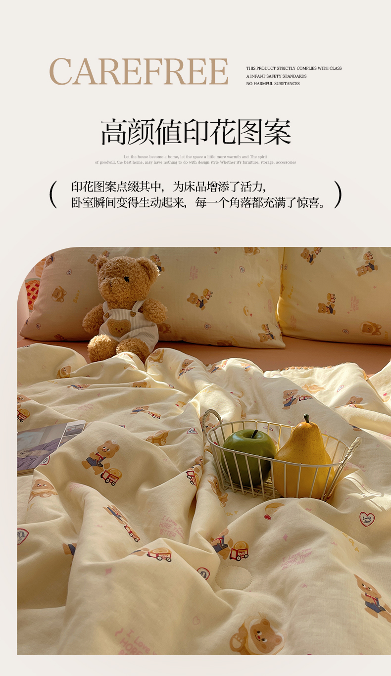 一加一 2025A类全棉有氧双层纱印花夏被 可比熊
