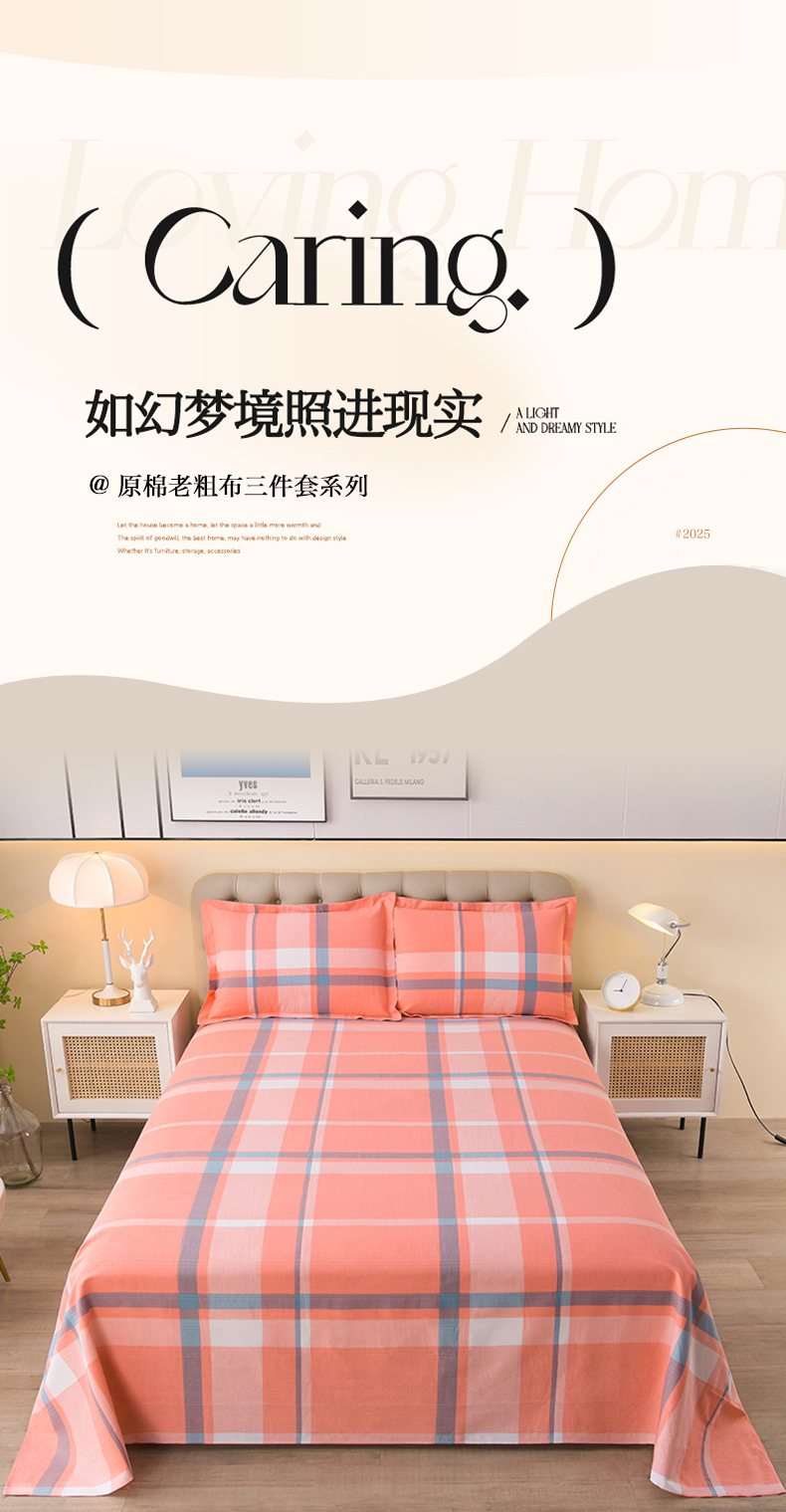 当前位置: 91家纺网 > 商品网购 > 床品套件 > 三件套 > 润淳家居 2025新款老粗布三件套及单品 清意格 桔